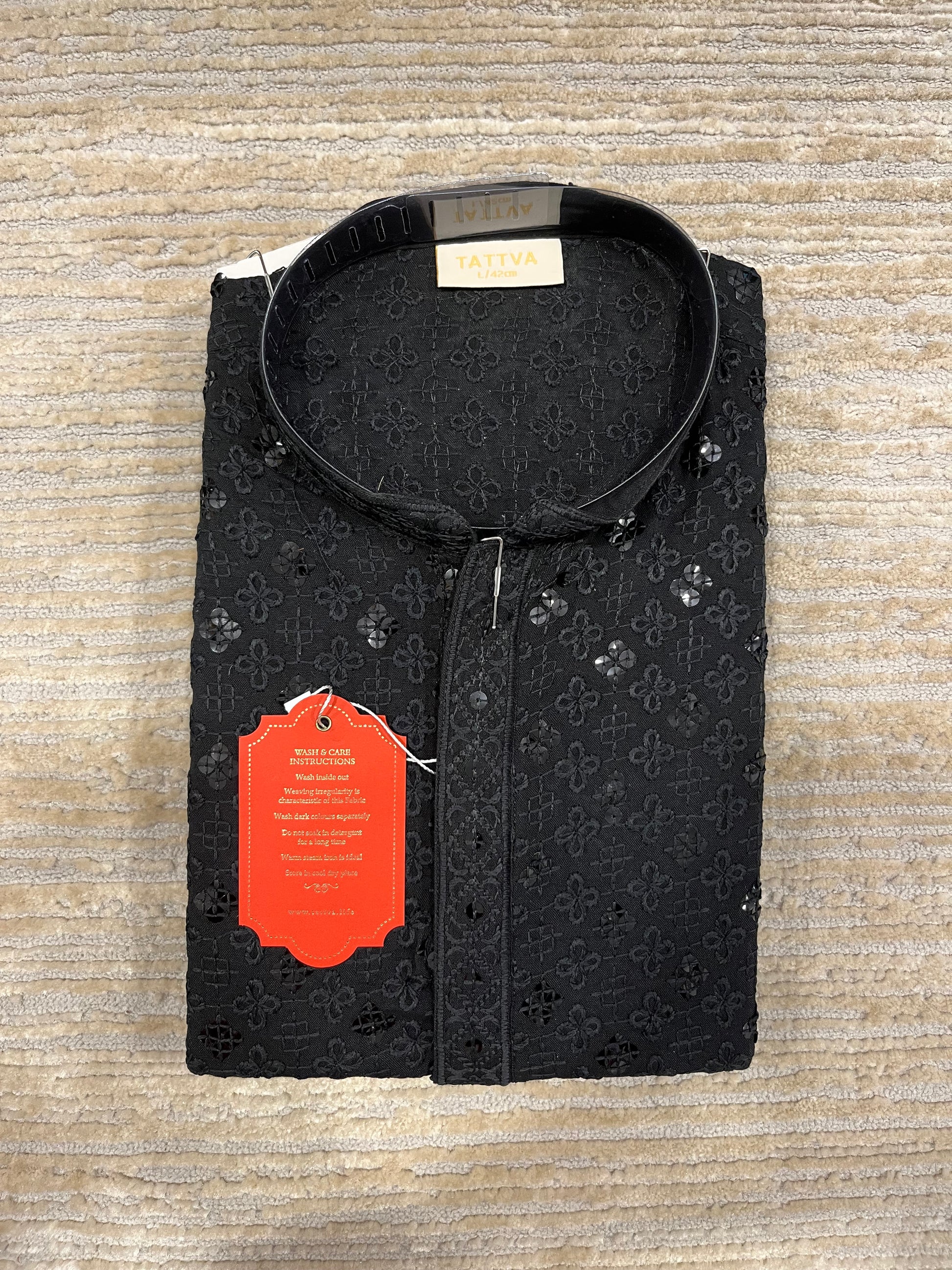 Southloom Chikankari Short Kurta for Men in Black Colour