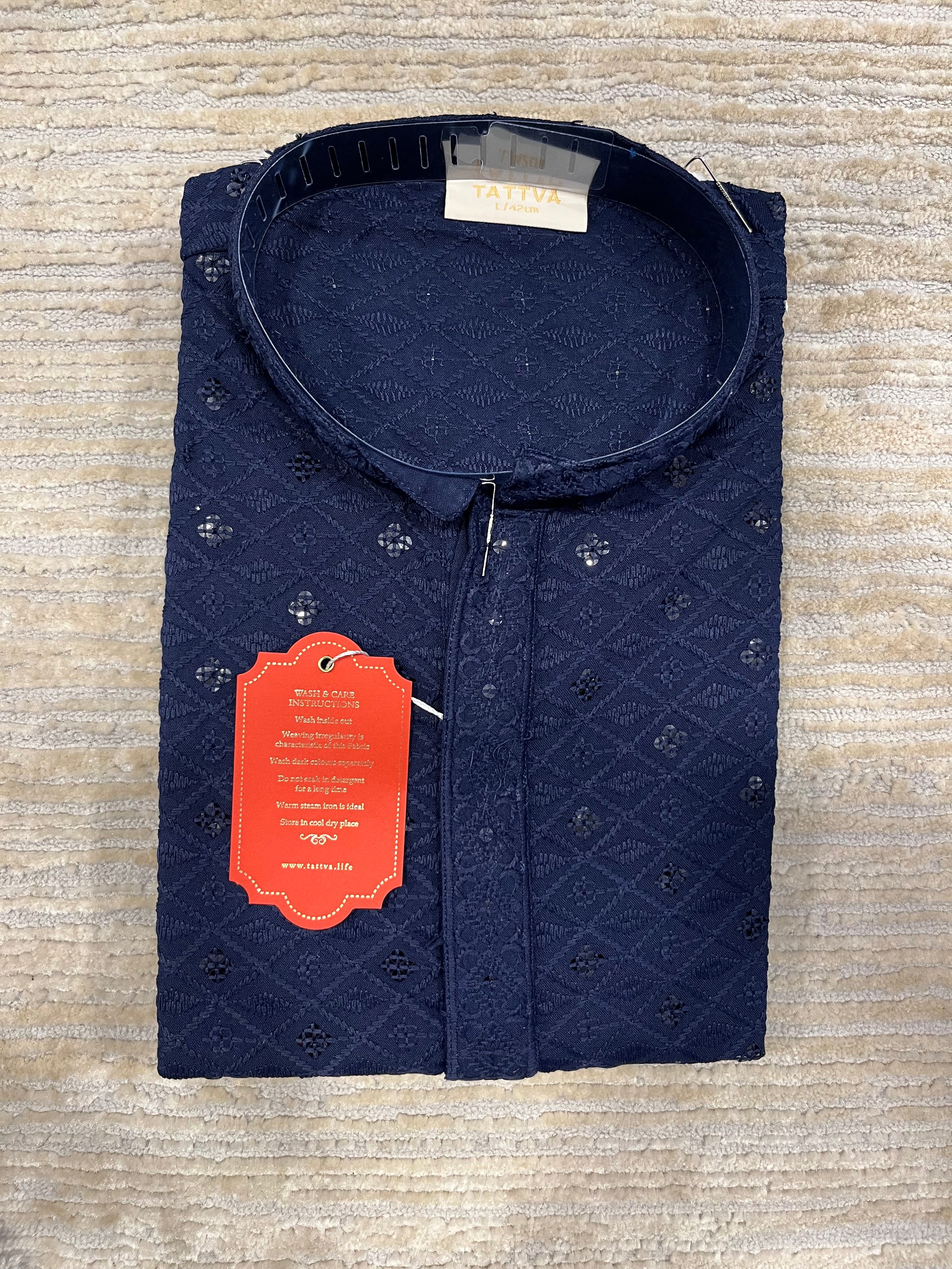 Southloom Chikankari Short Kurta for Men in Navy Blue Colour