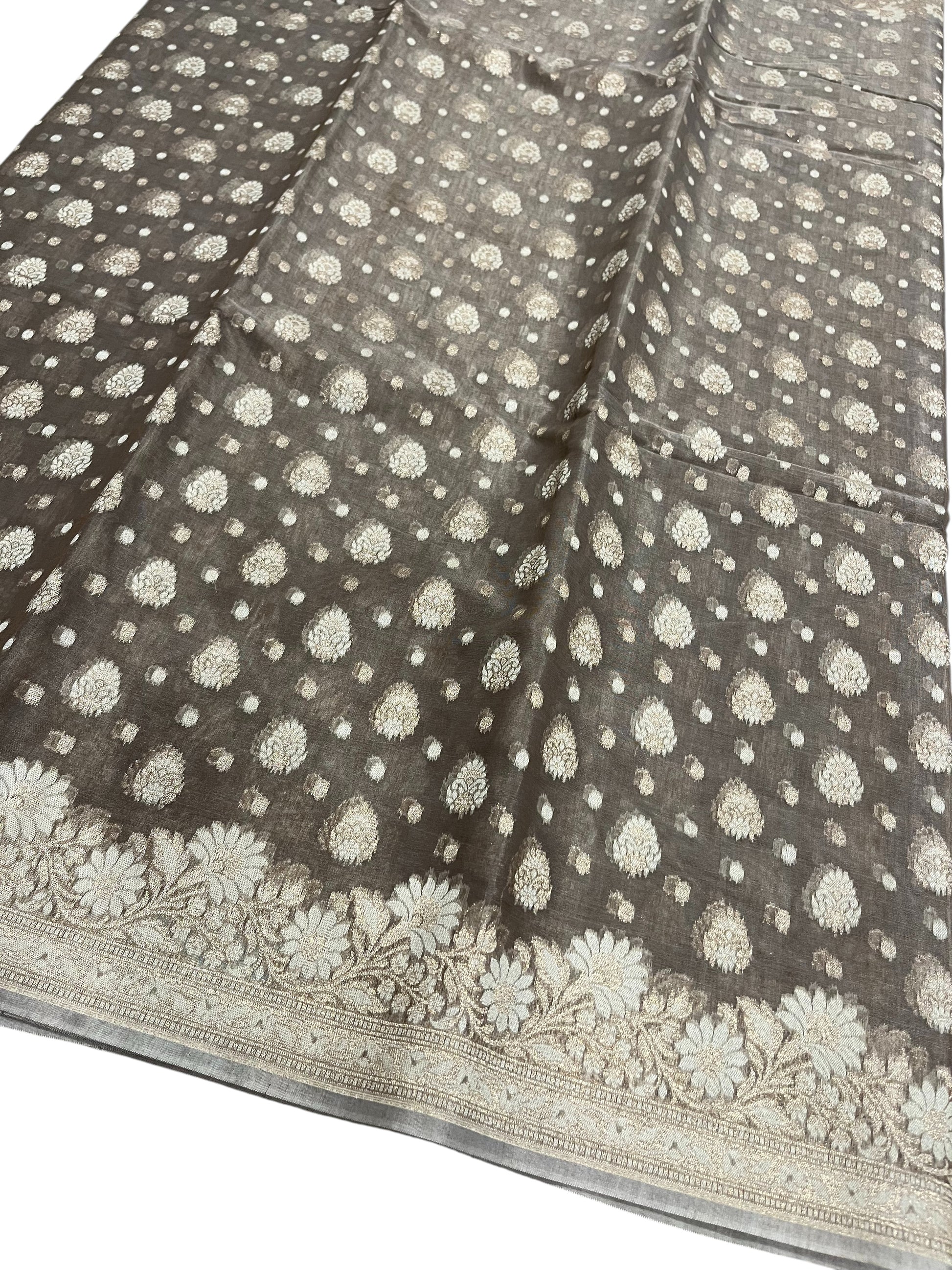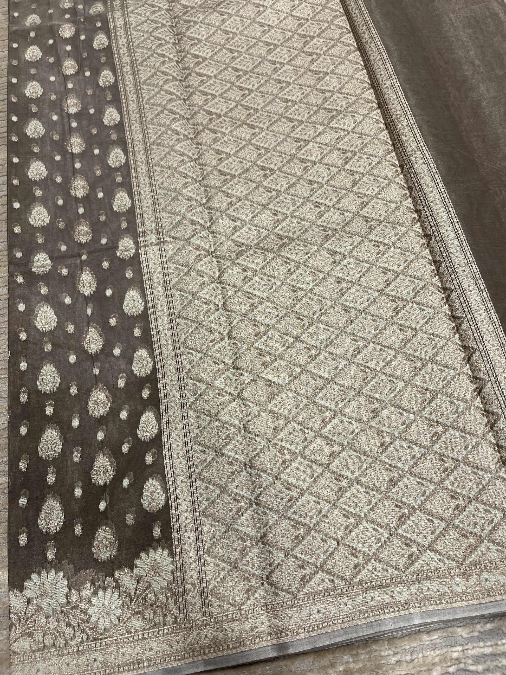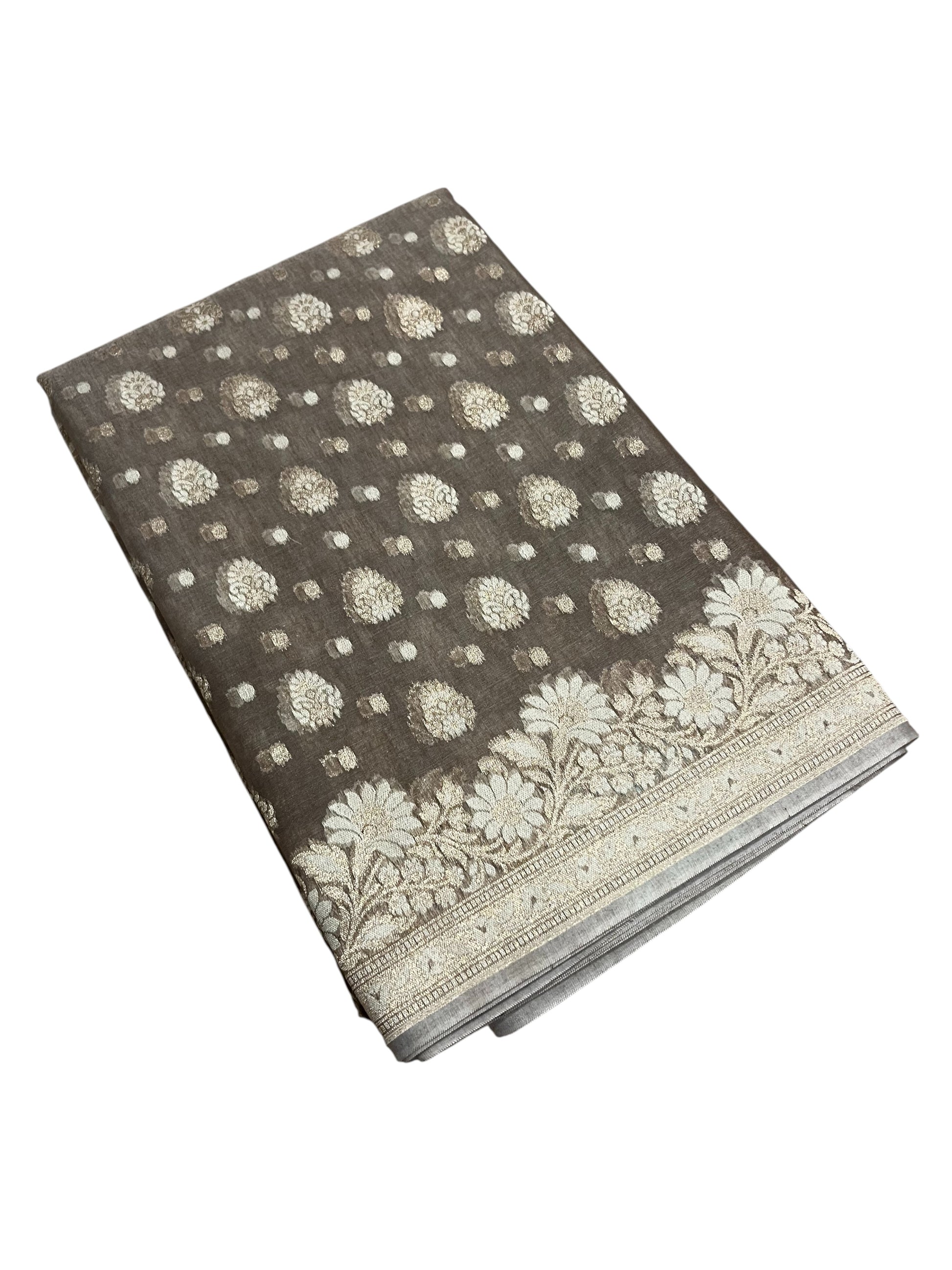 Southloom Cotton Banarasi Silk Saree with Woven Work on Body and Borders (Brown)