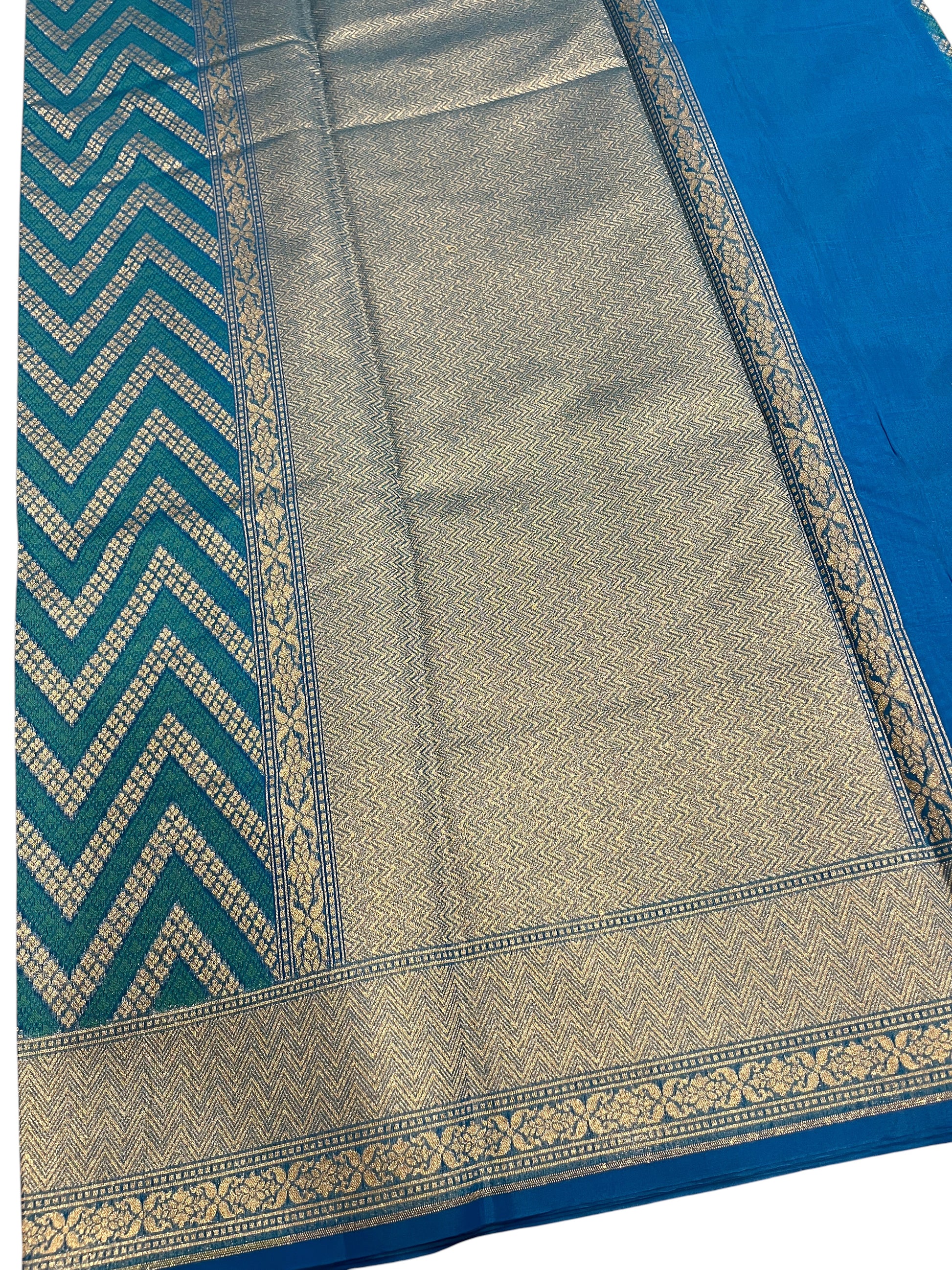 Southloom Cotton Banarasi Silk Saree with Woven Work on Body and Borders (Blue)