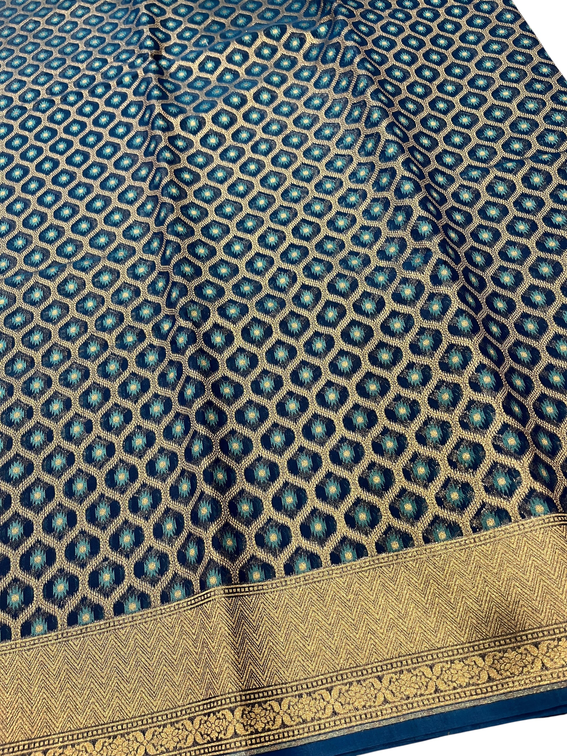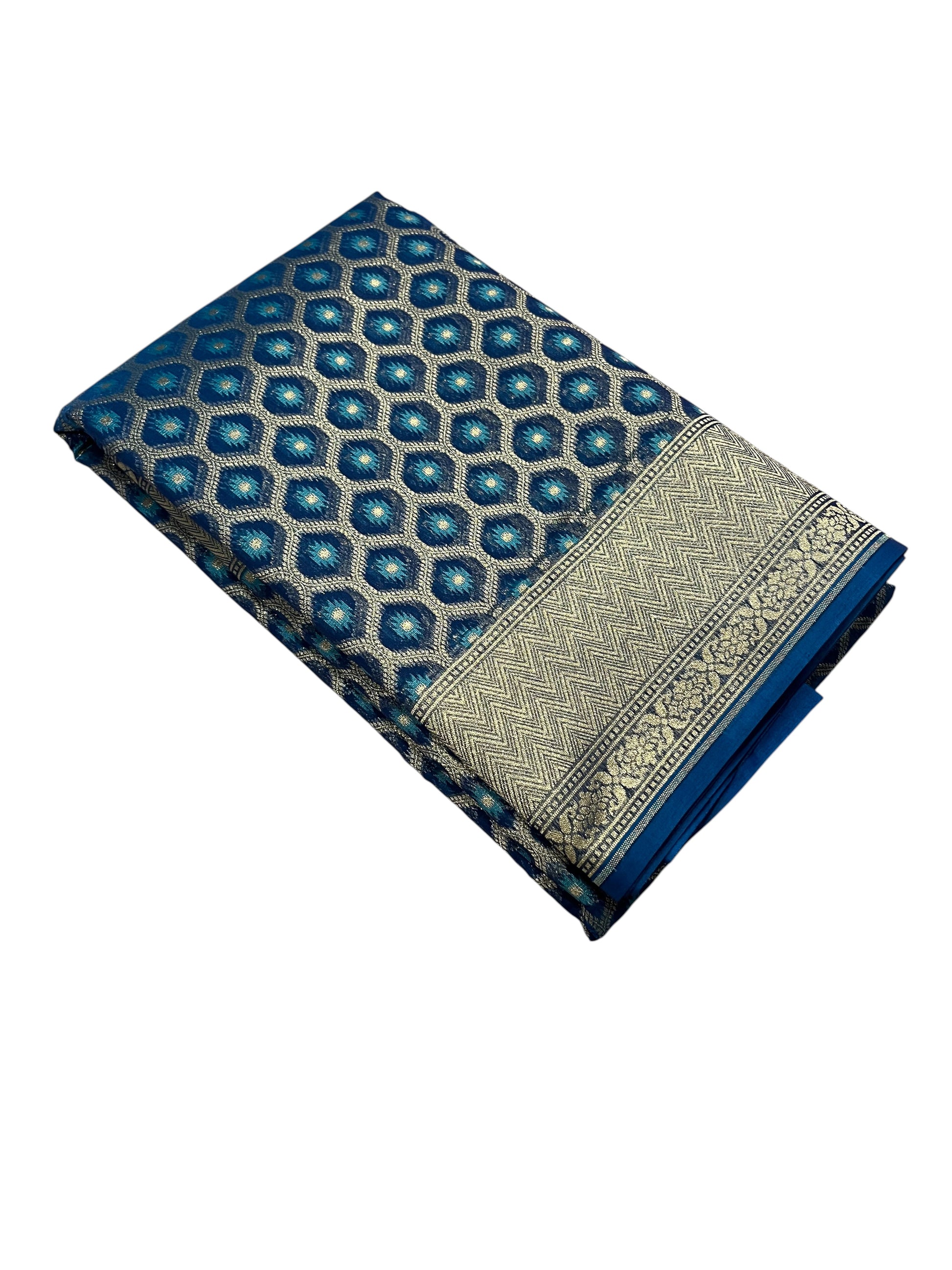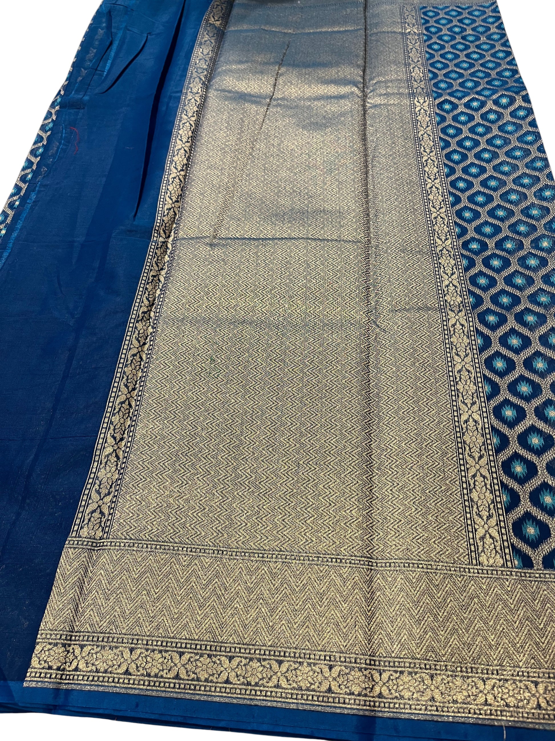 Southloom Cotton Banarasi Silk Saree with Woven Work on Body and Borders (Blue)