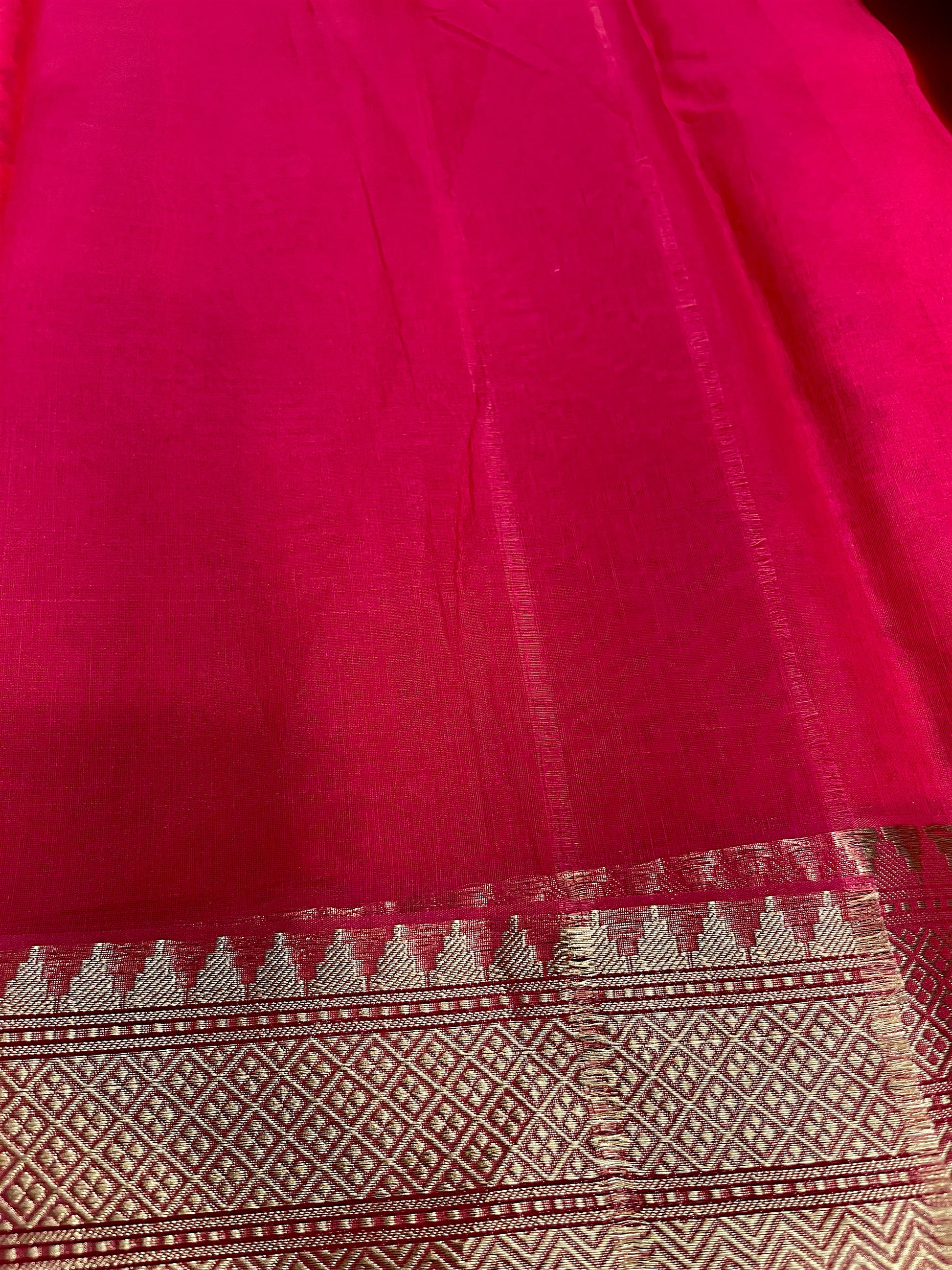 Southloom Cotton Banarasi Silk Saree with Woven Work on Body and Borders (Orange and Magenta)