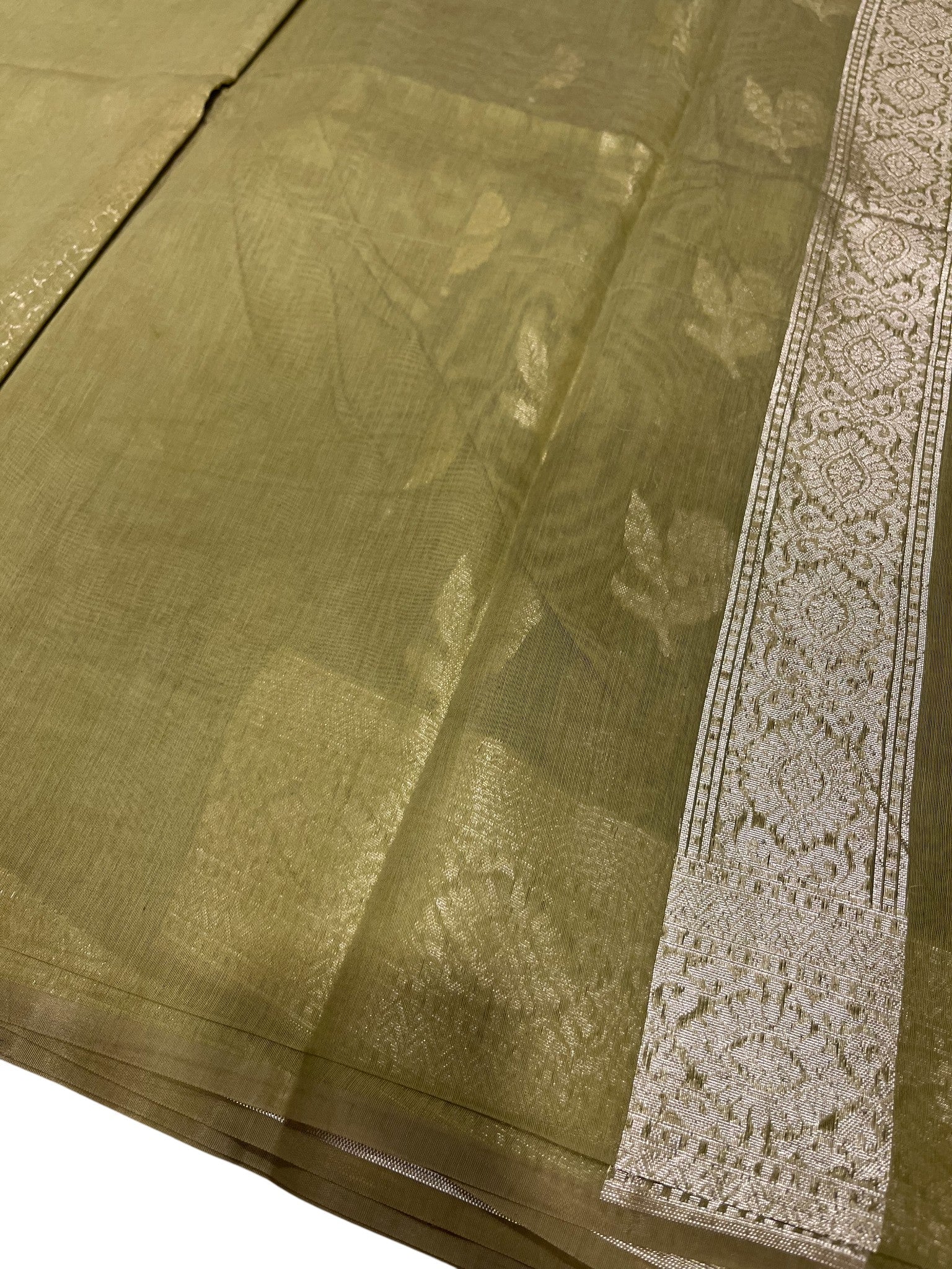 Southloom Cotton Banarasi Silk Saree with Woven Work on Body and Borders (Green)