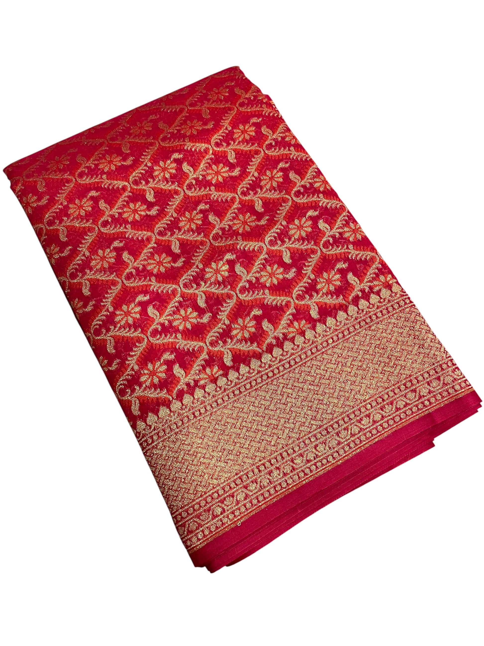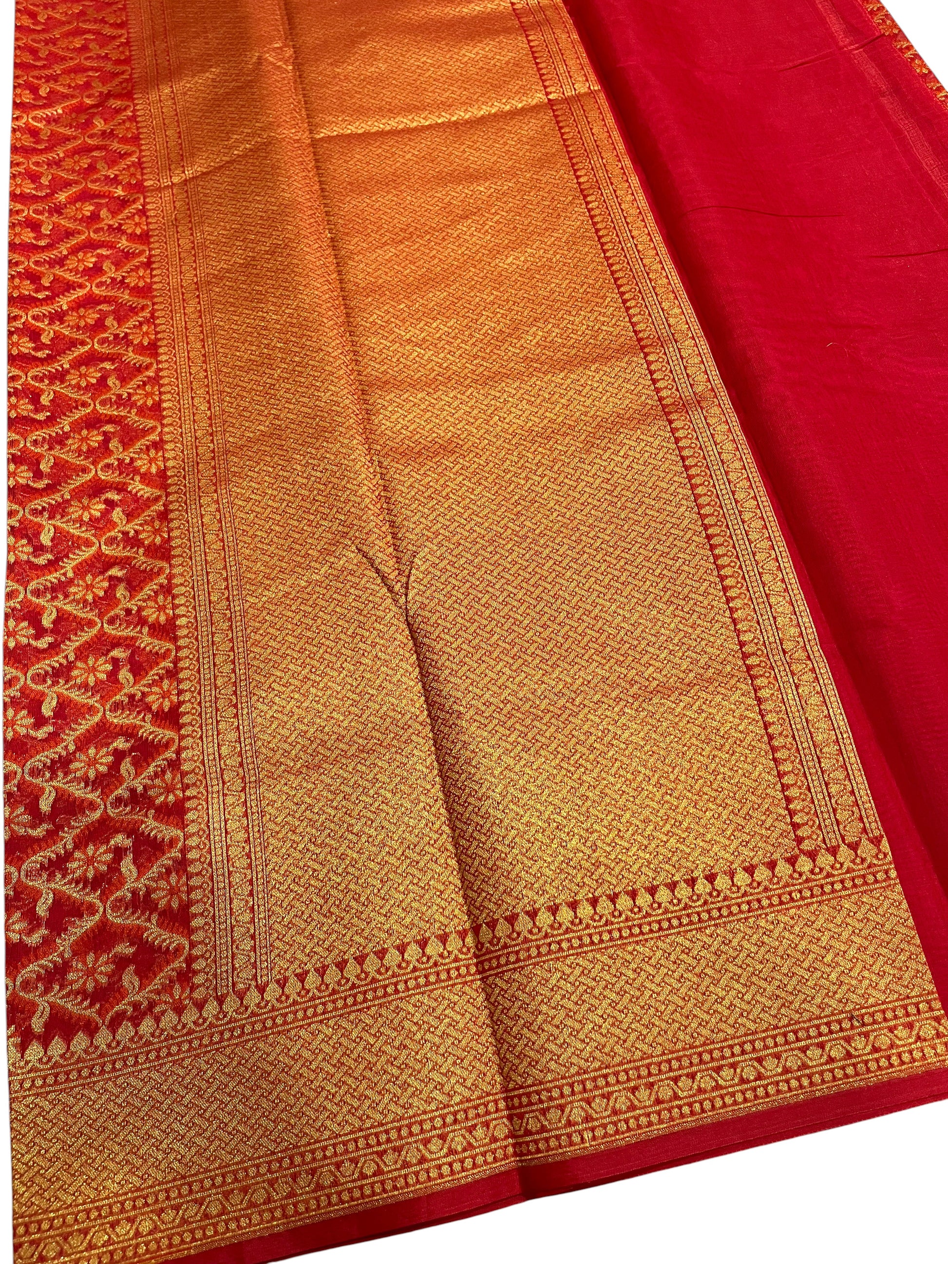 Southloom Cotton Banarasi Silk Saree with Woven Work on Body and Borders (Magenta & Orange)