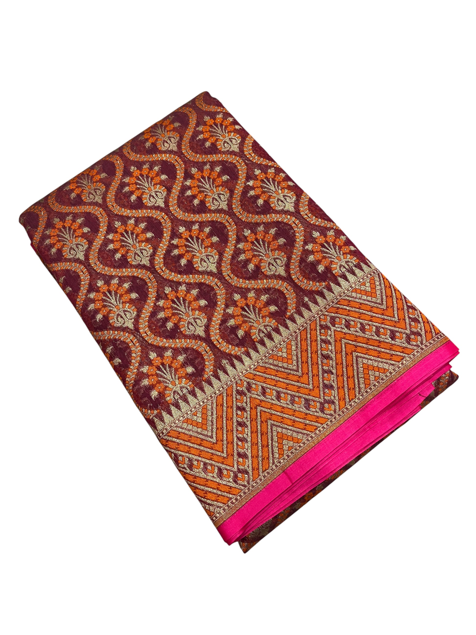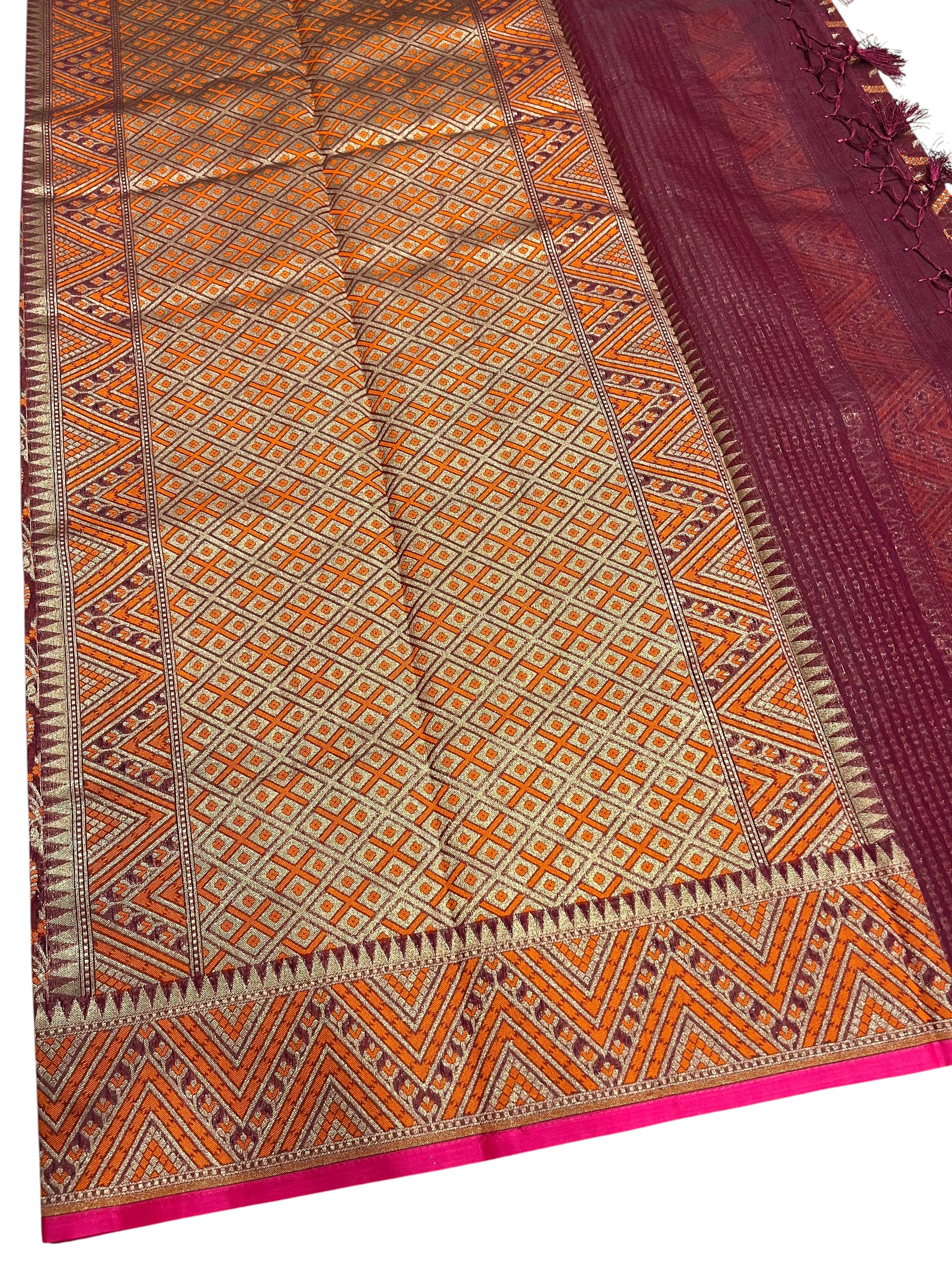 Southloom Cotton Banarasi Silk Saree with Woven Work on Body and Borders (Orange & Magenta)