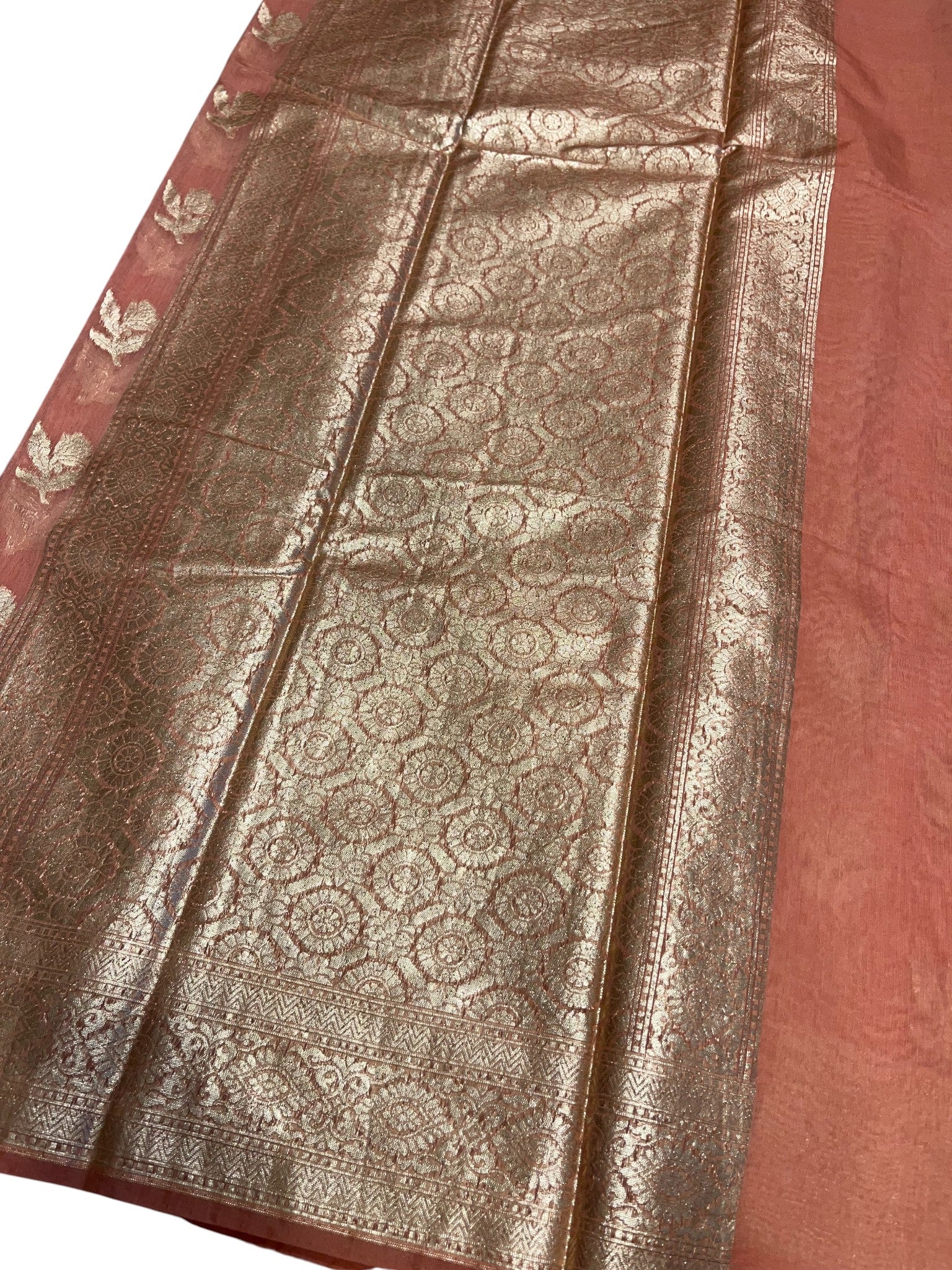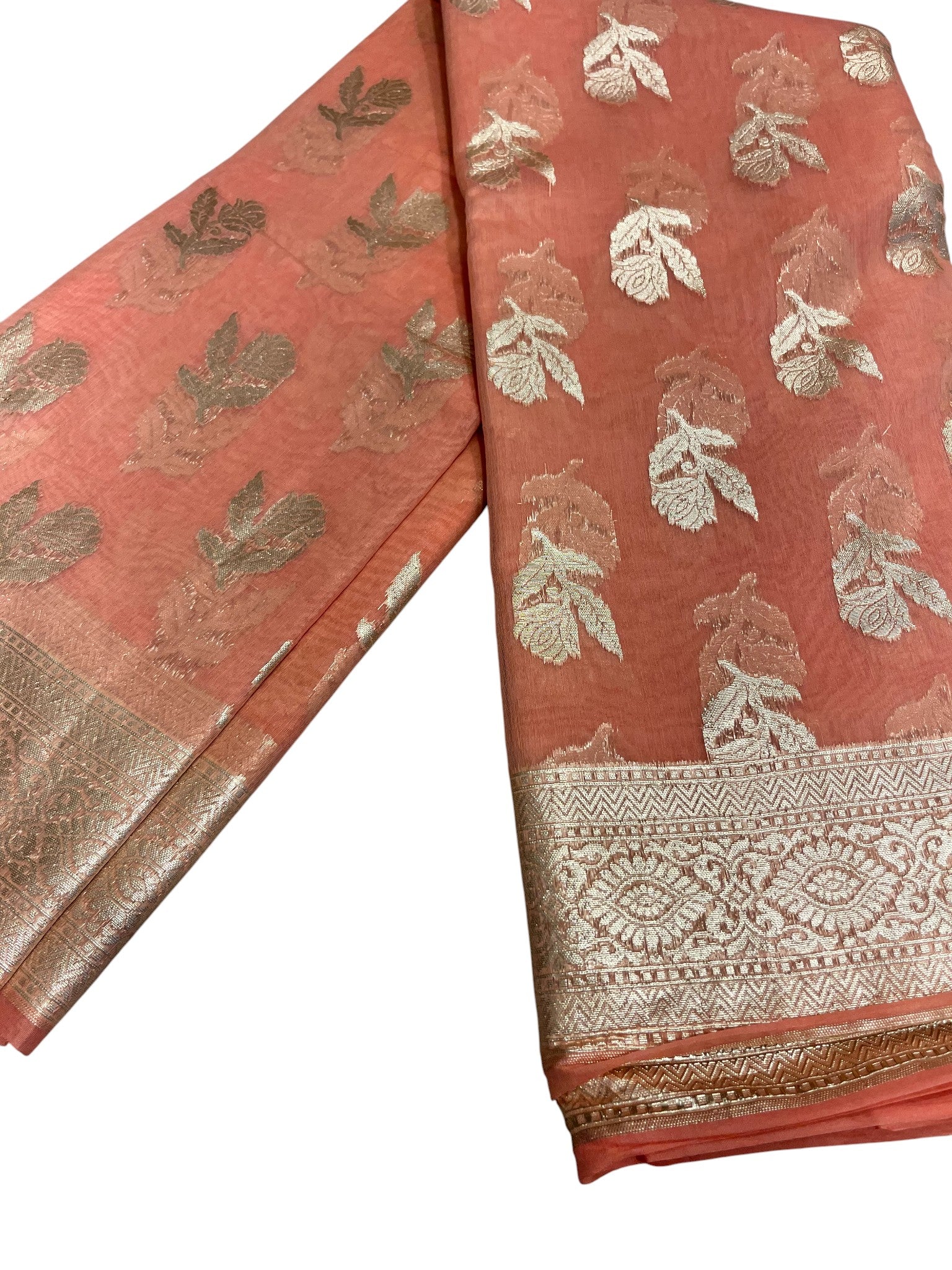 Southloom Cotton Banarasi Silk Saree with Woven Work on Body and Borders (Peach)