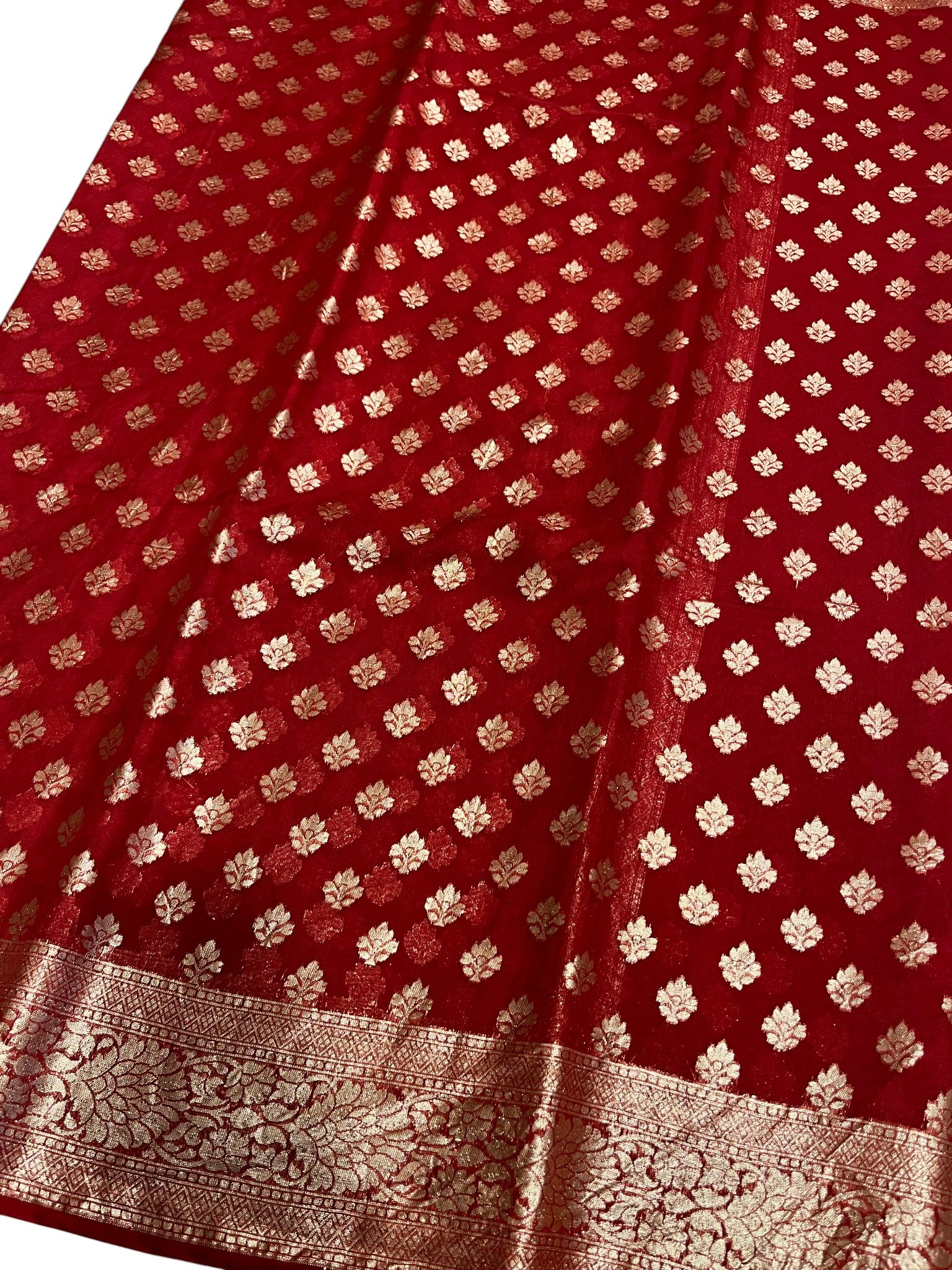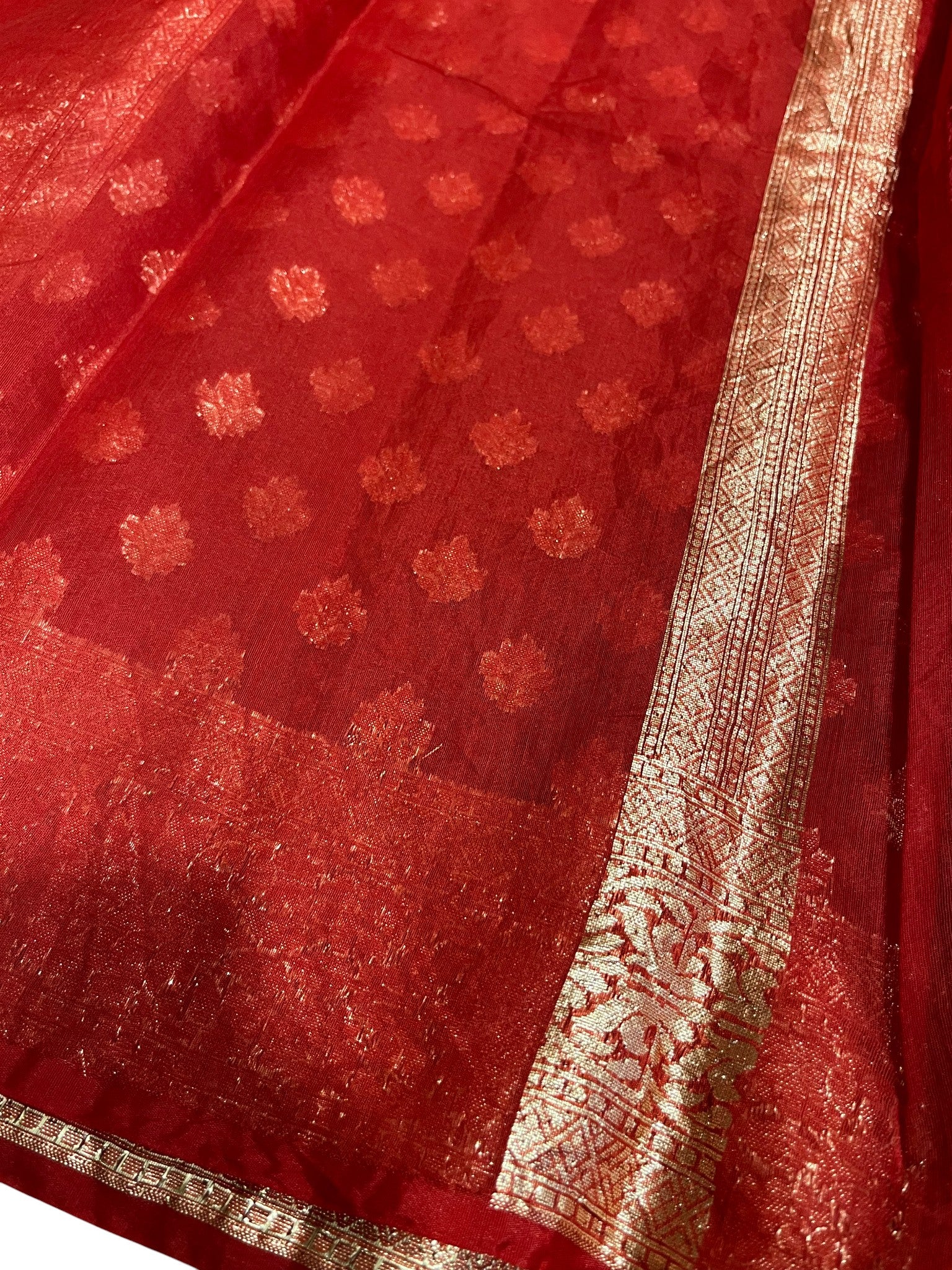 Southloom Cotton Banarasi Silk Saree with Woven Work on Body and Borders (Red)