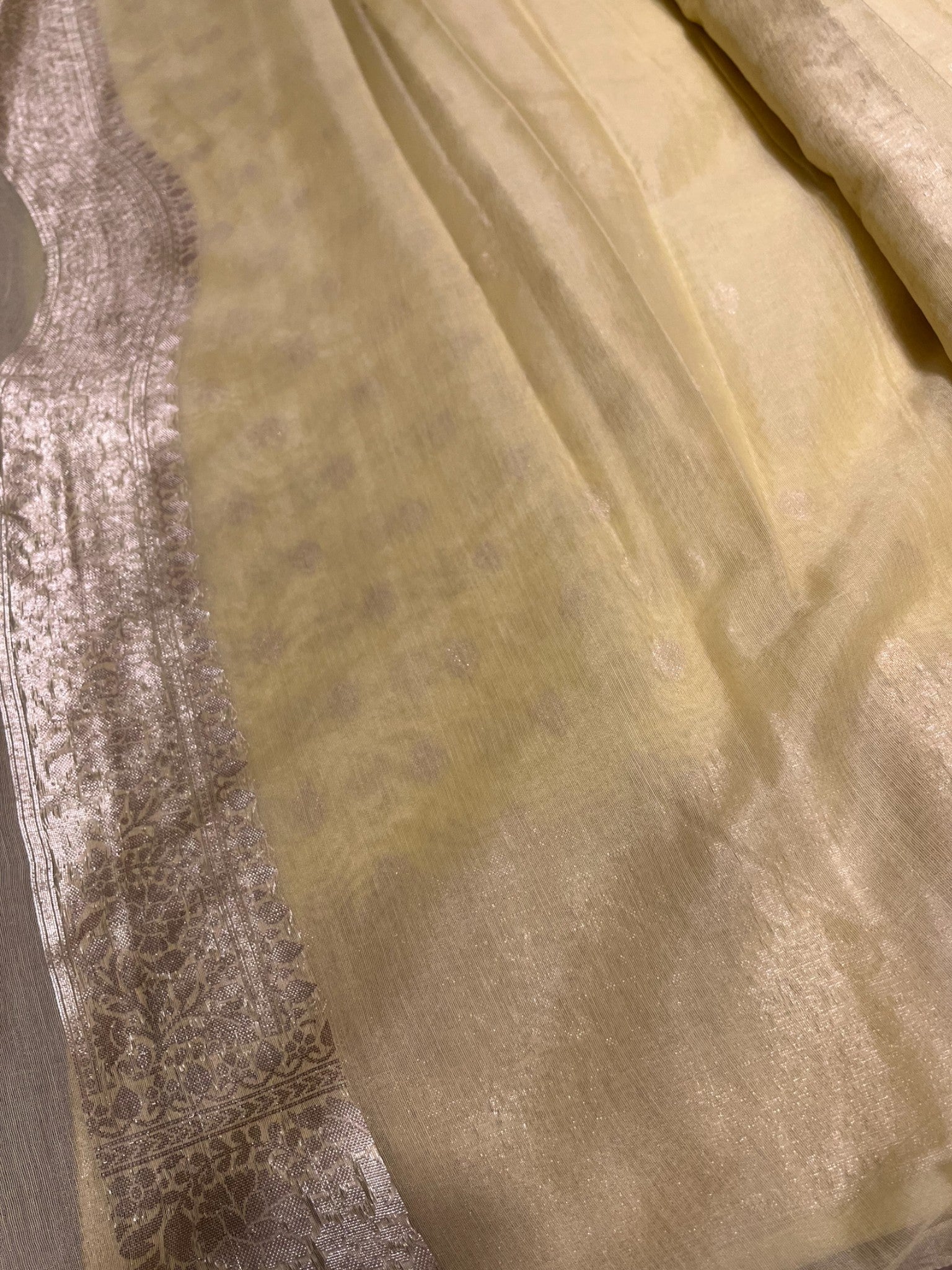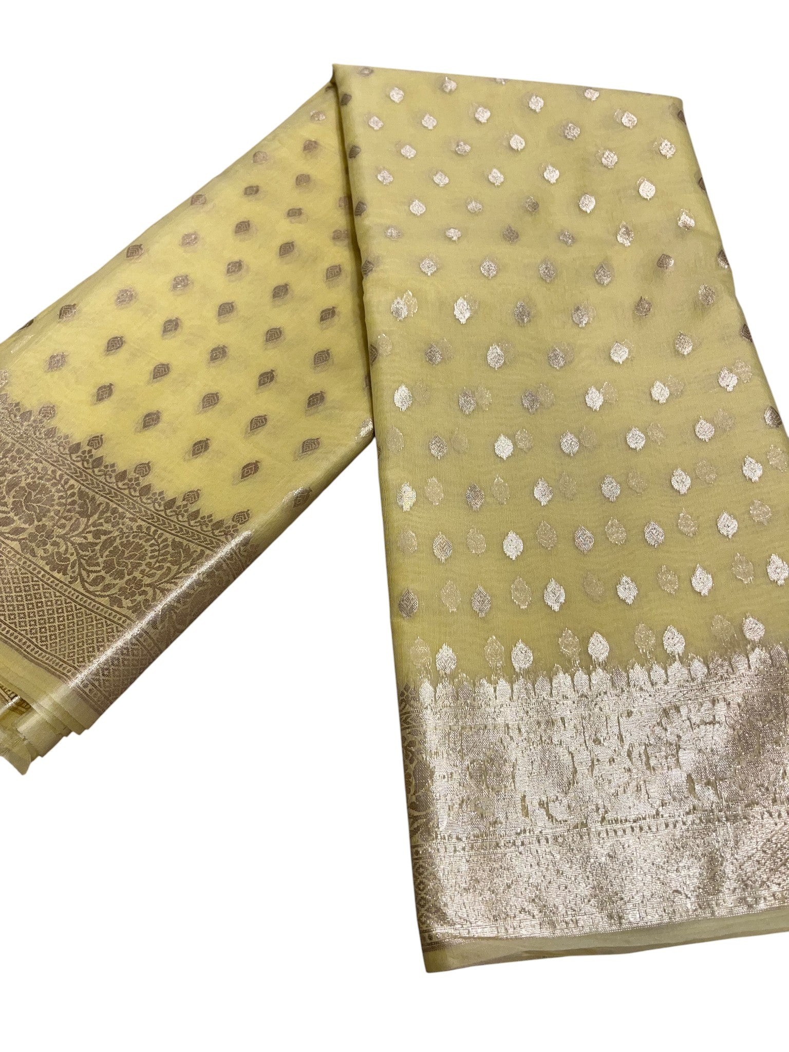 Southloom Cotton Banarasi Silk Saree with Woven Work on Body and Borders (Yellow)