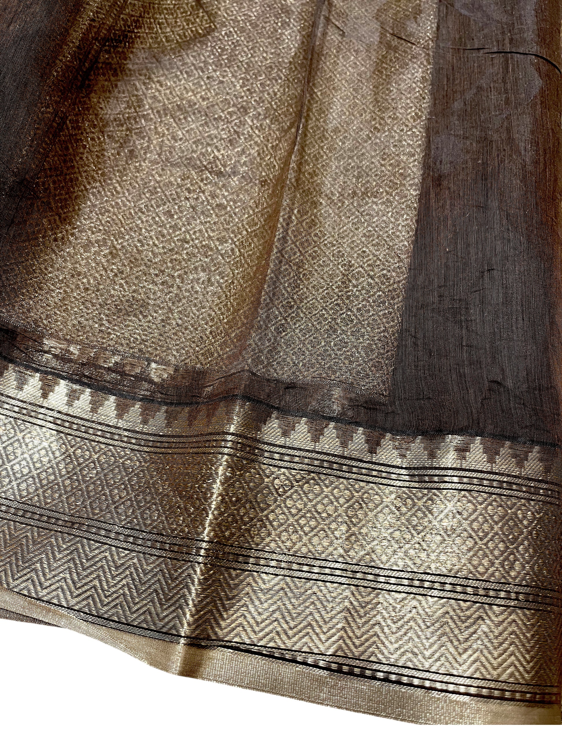 Southloom Cotton Banarasi Silk Saree with Woven Work on Body and Borders(Brown)