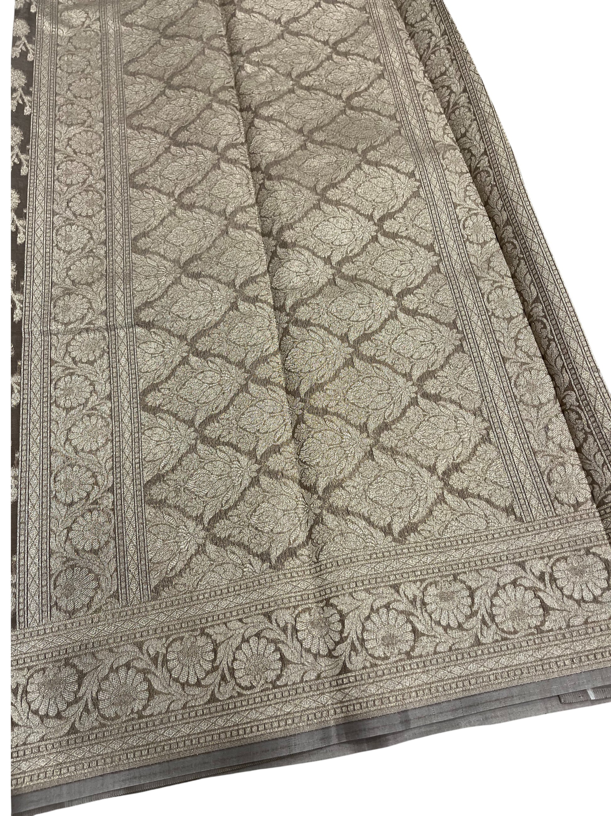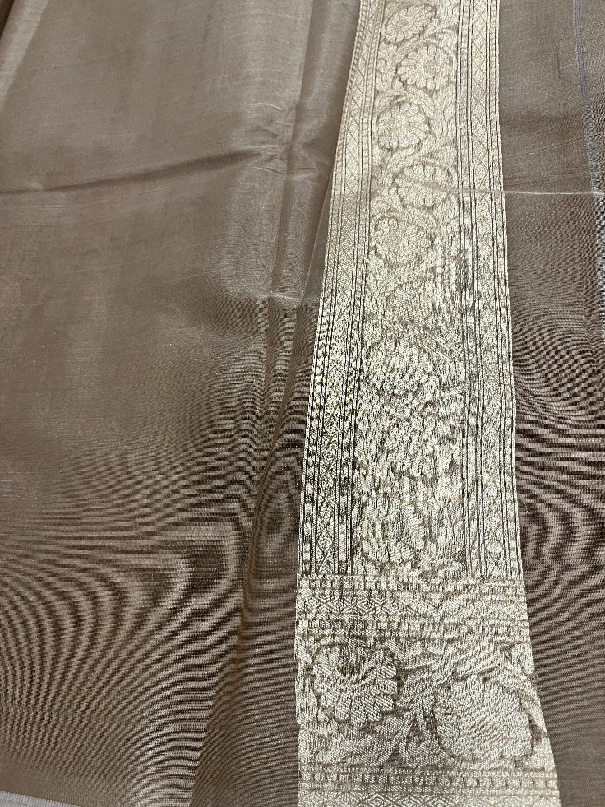 Southloom Cotton Banarasi Silk Saree with Woven Work on Body and Borders(Brown)