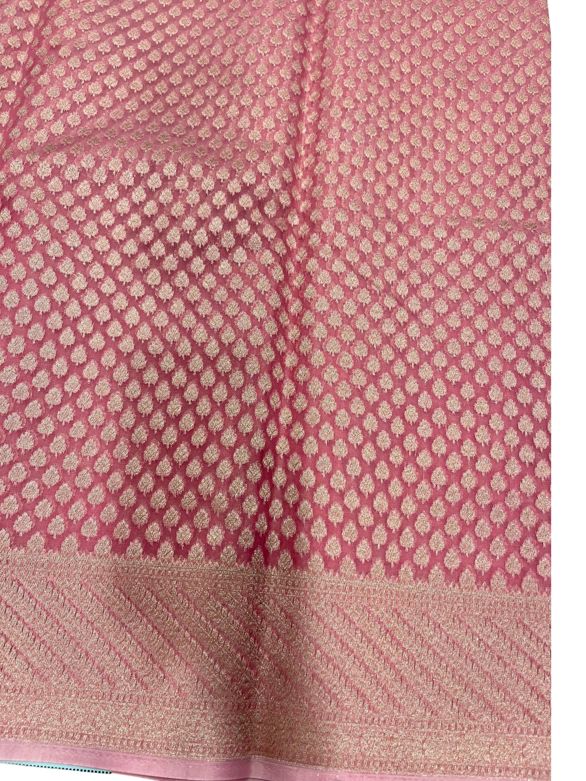 Southloom Cotton Banarasi Silk Saree with Woven Work on Body and Borders(Pink)