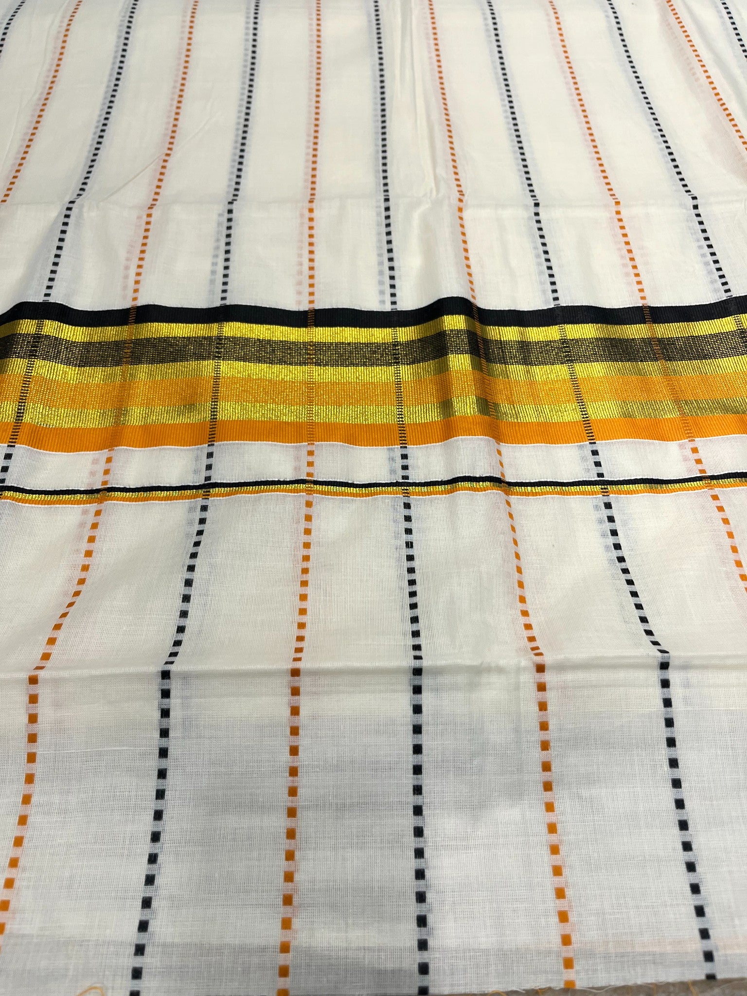 Southloom Cotton Kasavu Saree with Orange and Black Thread Work Across Body
