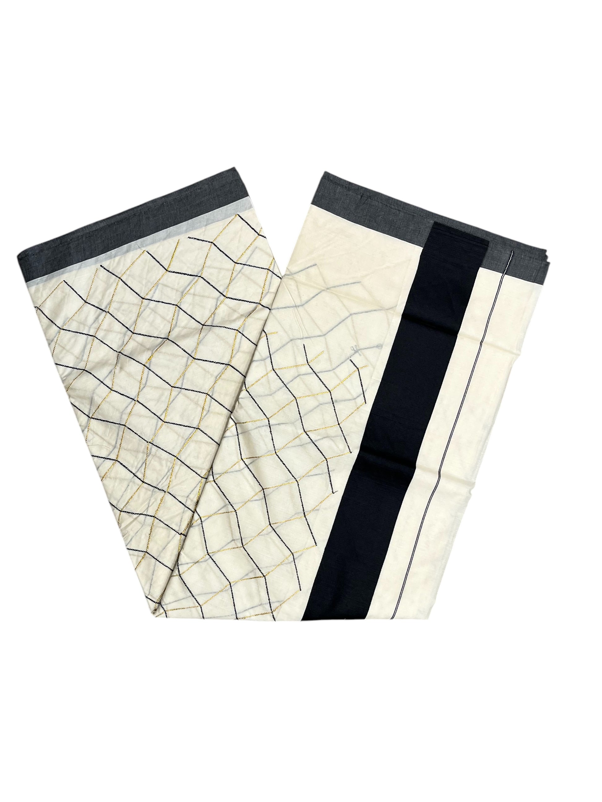 Southloom Cotton Kerala Kasavu Saree with Black and Golden Floral Designs