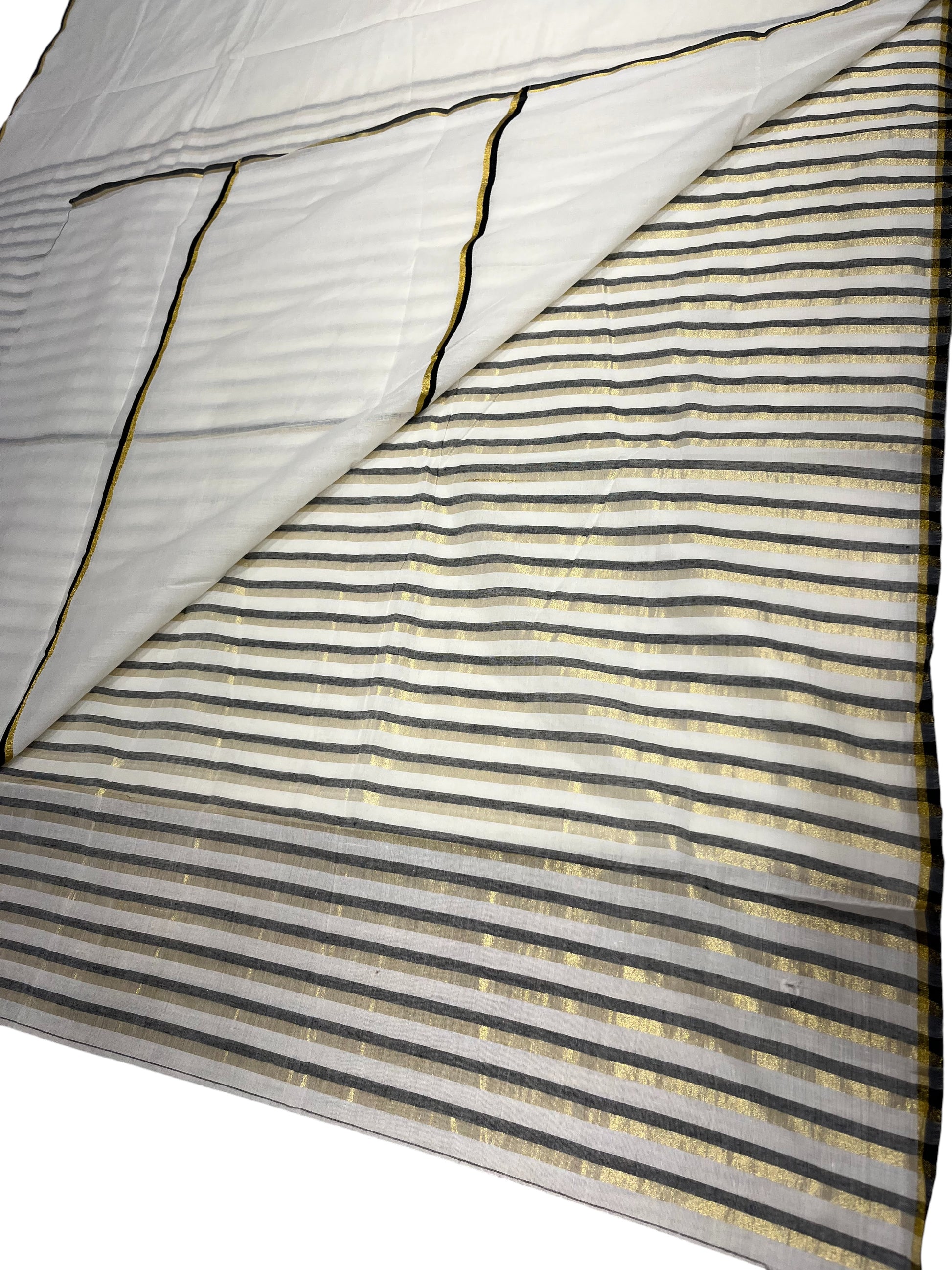 Southloom Puliyilakkara Black and Gold Kasavu Kerala Saree with Woven Blouse