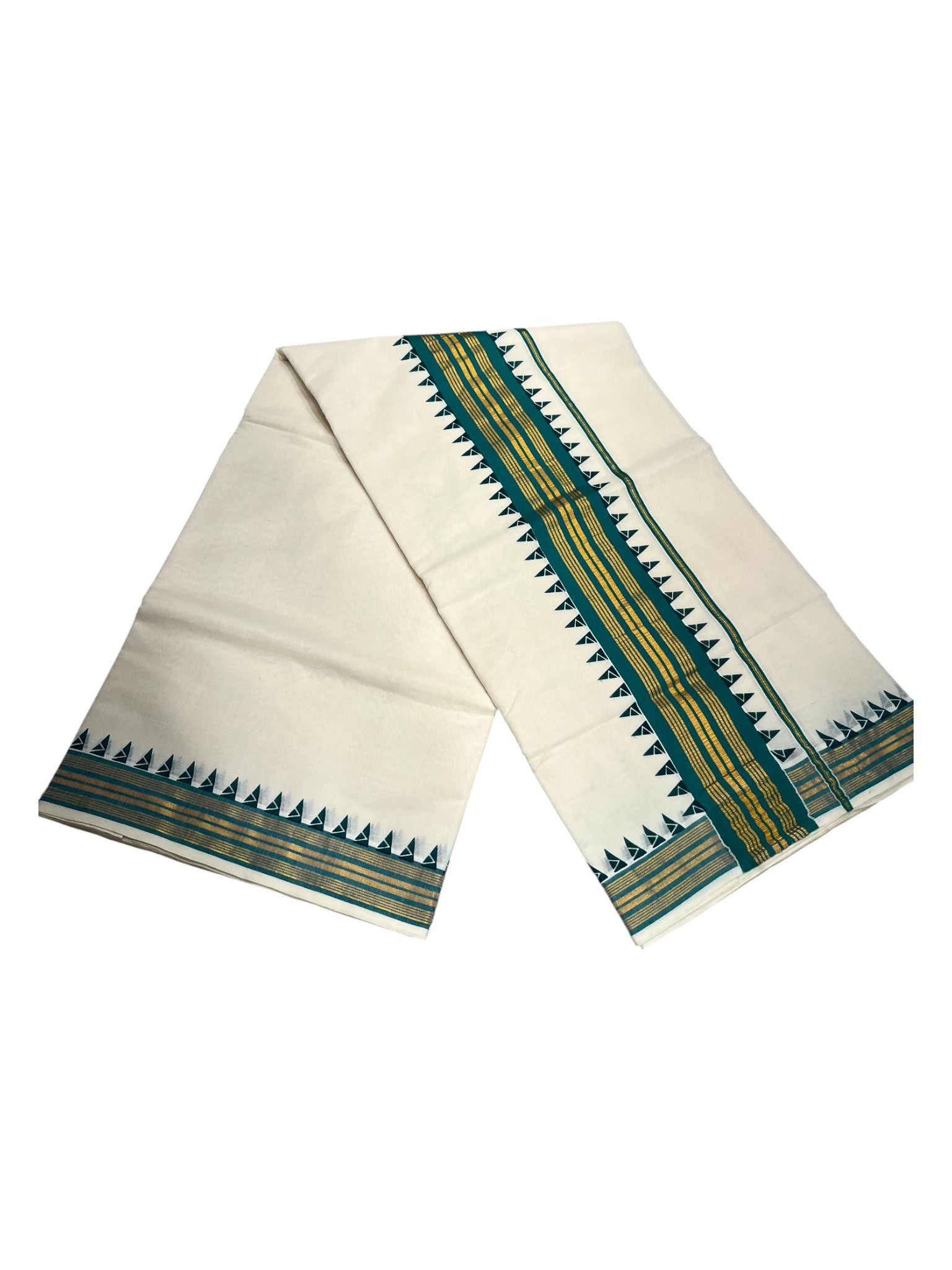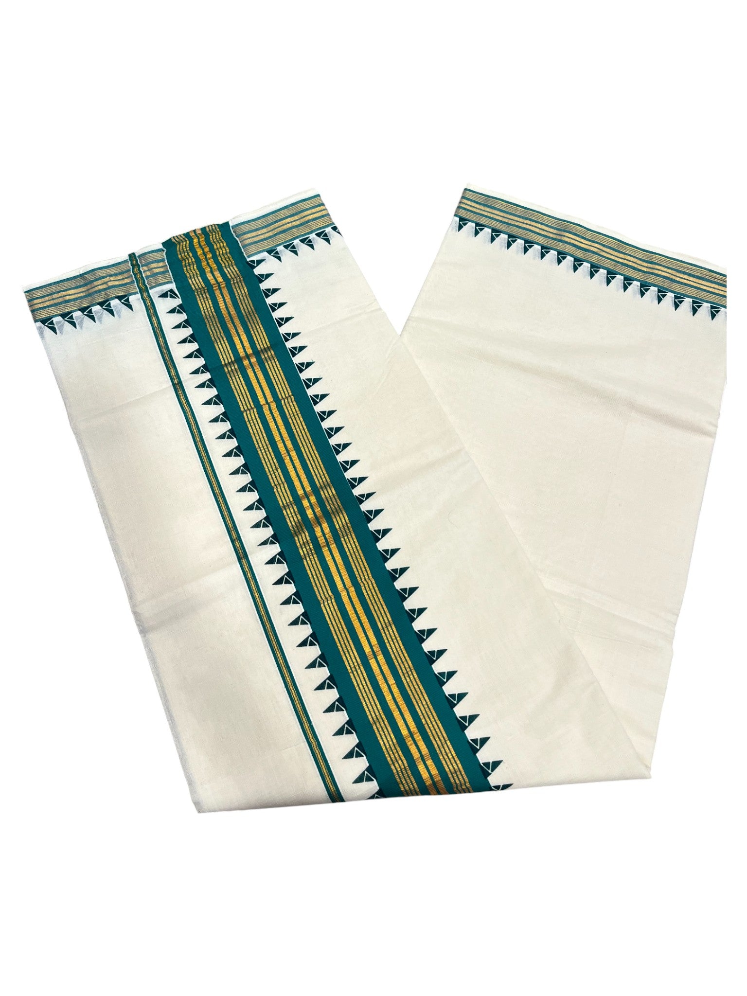 Southloom Cotton Kerala Kasavu Saree with Green Border