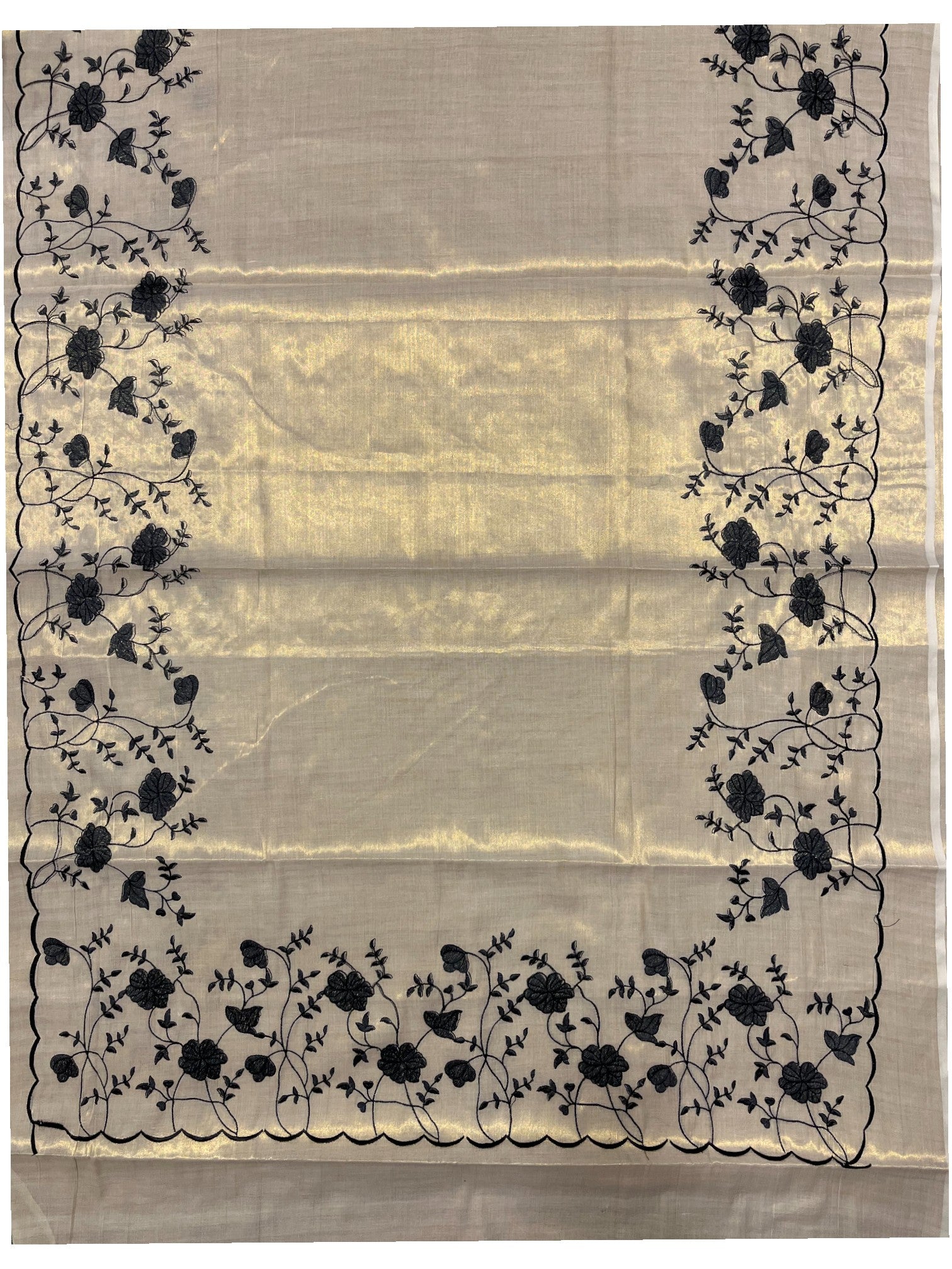 Southloom Cotton Kerala Saree with Floral Embroidery Design on Border