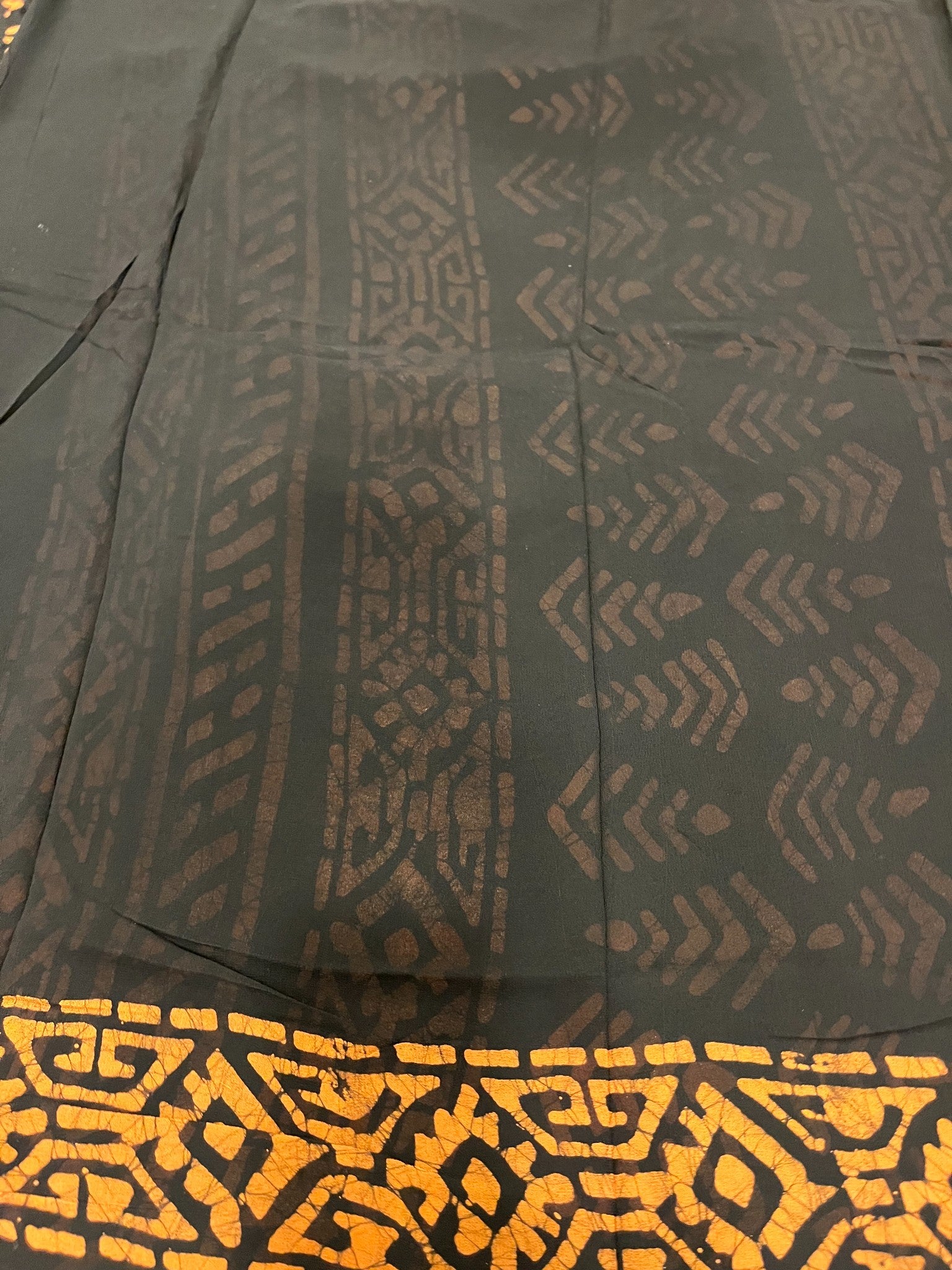 Southloom Georgette Saree with Floral Works Across Body in Black and Orange