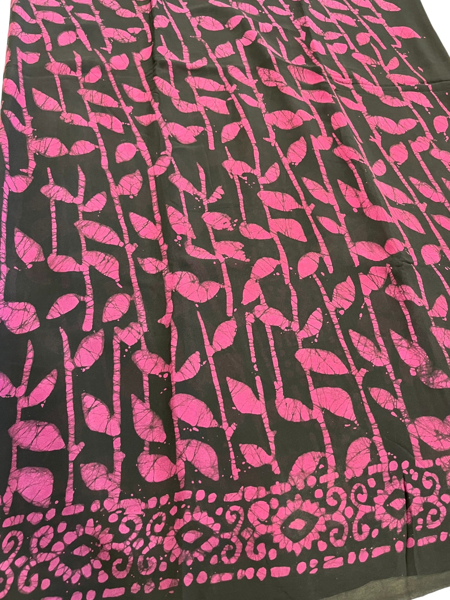 Southloom Georgette Saree with Floral Works Across Body in Black and Pink