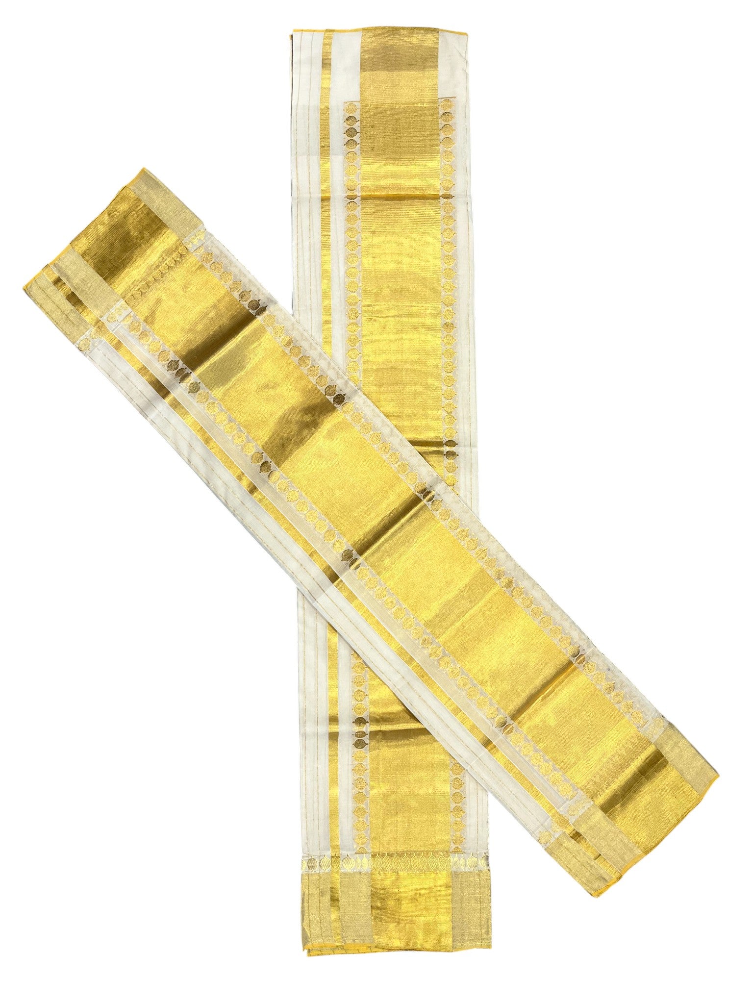 Southloom Handloom Premium Cotton Kasavu Stripes Set Mundu With Polka Woven Patterns On Border (Mundum Neriyathum) 2.80 Mtrs