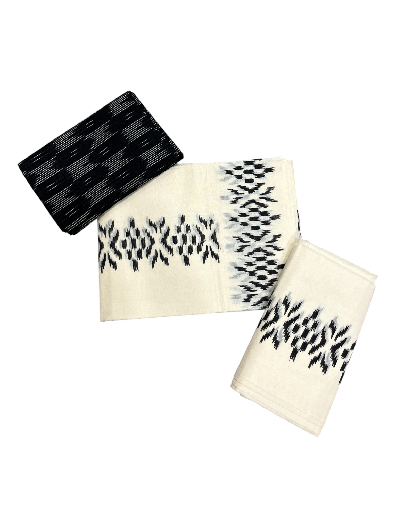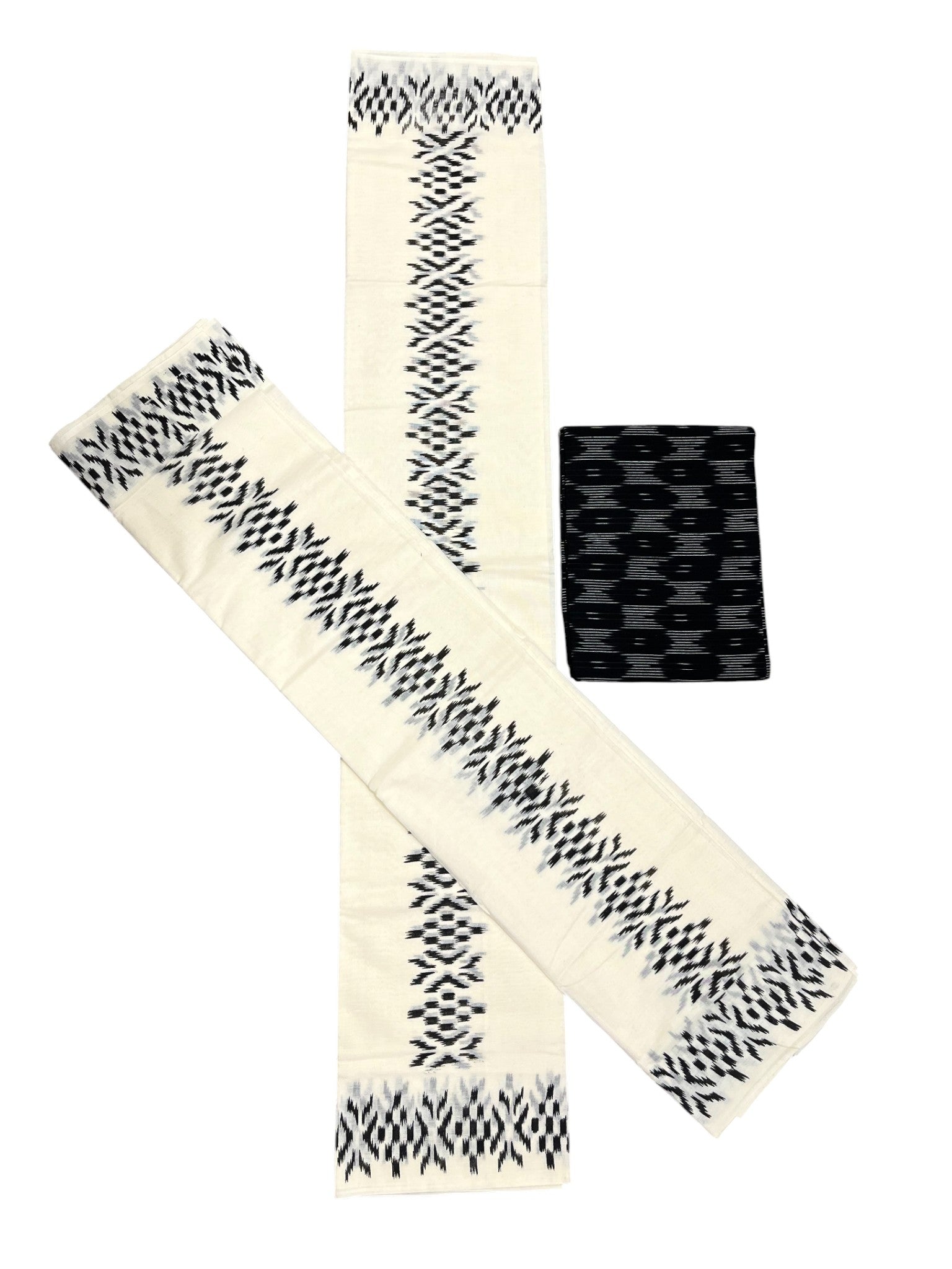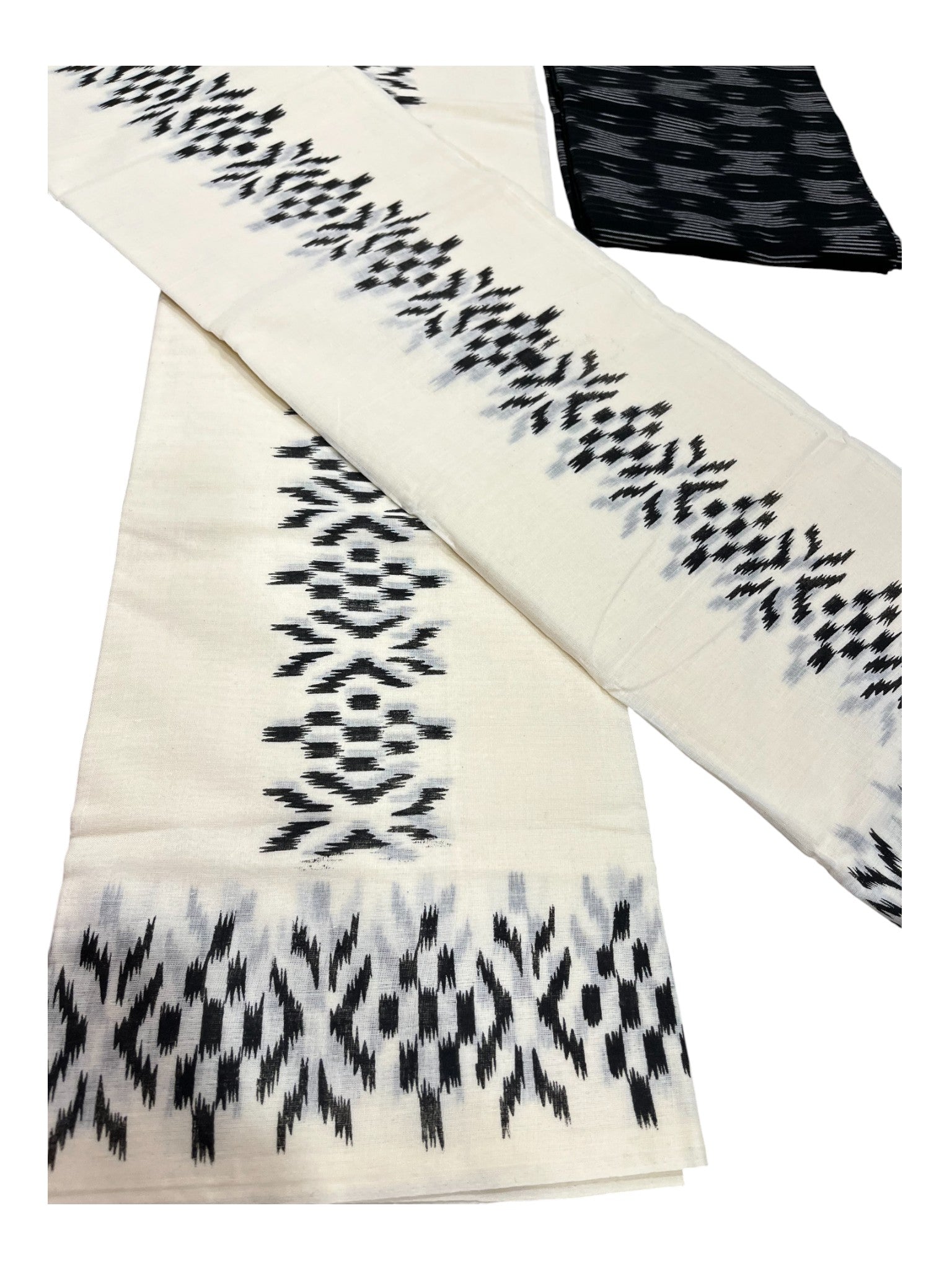 This Mundum Neriyathum has a simple design with Ikat Design Print. It is an ideal for daily use or for occasions. The mundum neriayathum which was the traditional attire of Kerala women is regaining its popularity back.