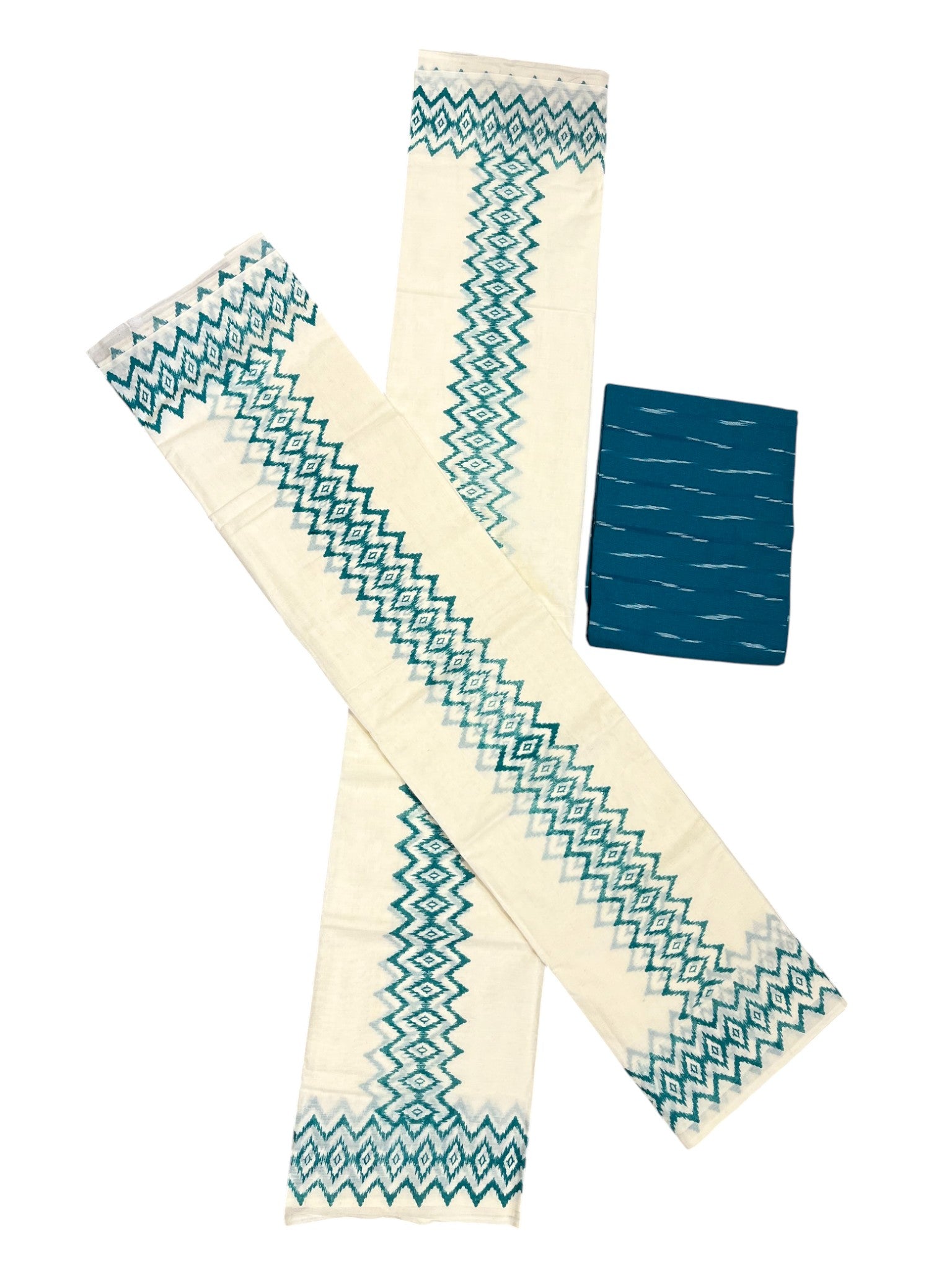 Southloom Ikat Design Green Printed Set Mundu with Blouse Piece 2.80Mtrs