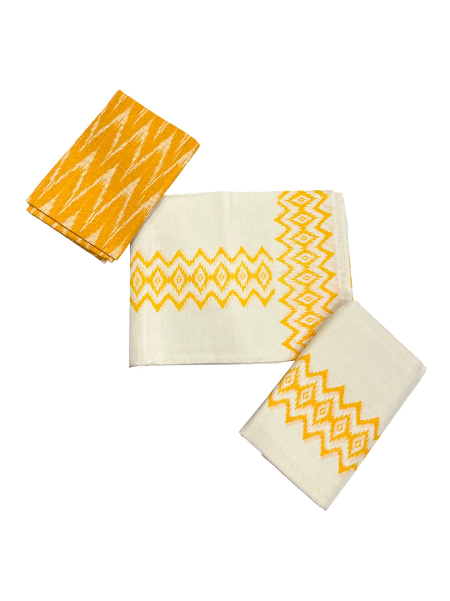 Southloom Ikat Design Yellow Printed Set Mundu with Blouse Piece 2.80Mtrs