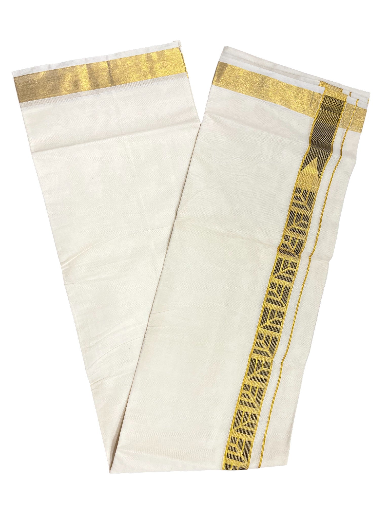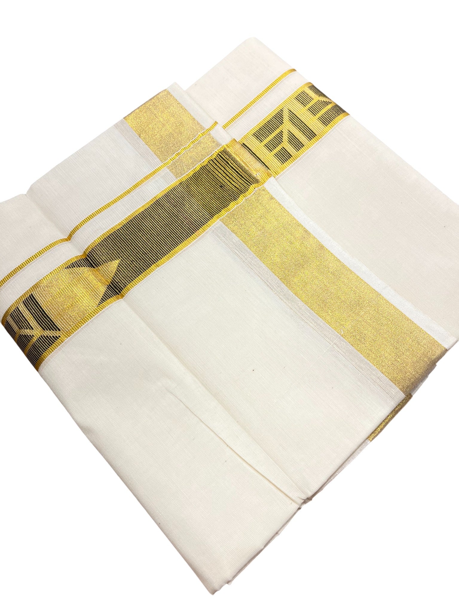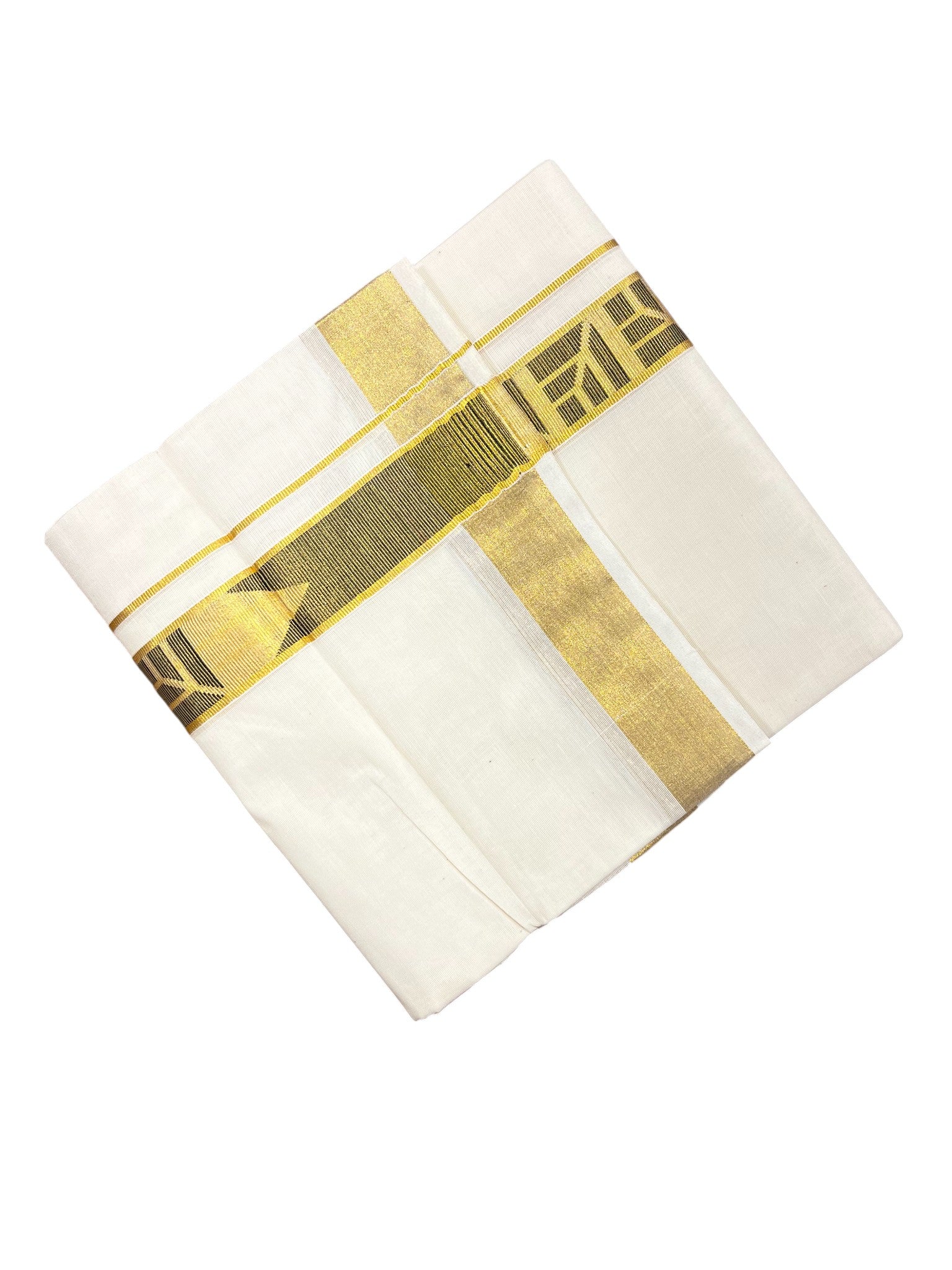 Southloom Kasavu Double Mundu with Black Prints Along Kasavu Kara