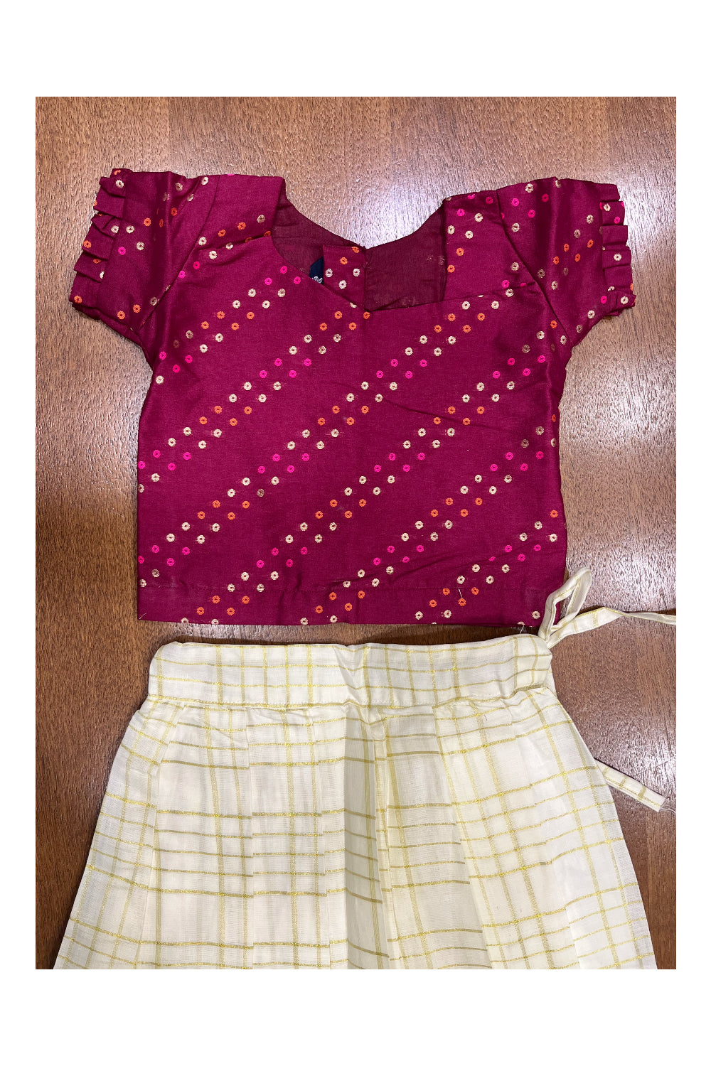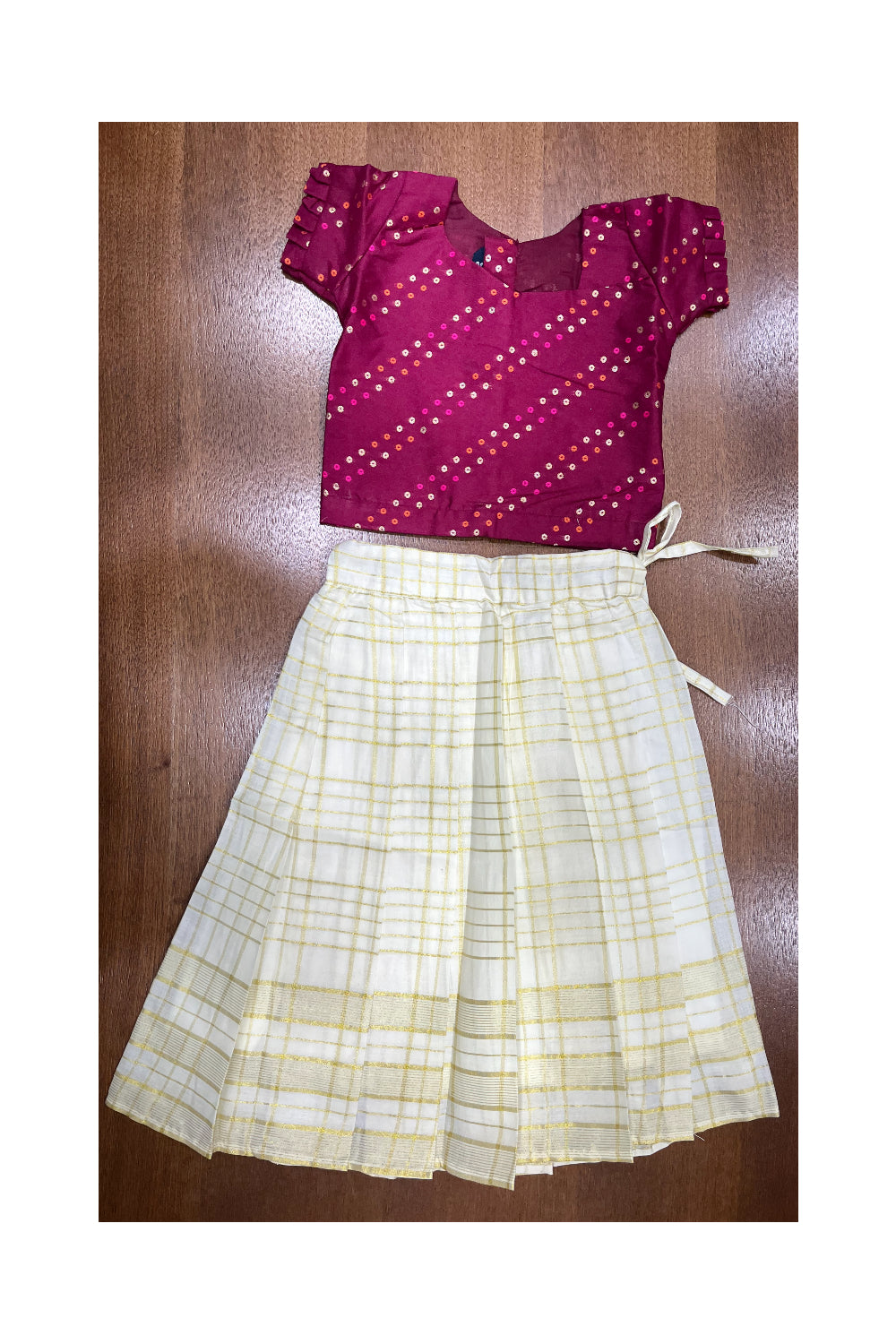 Southloom Kerala Maroon And Tissue Kasave Pavada Blouse with Bead Work for Kids (Age 1 - 5)