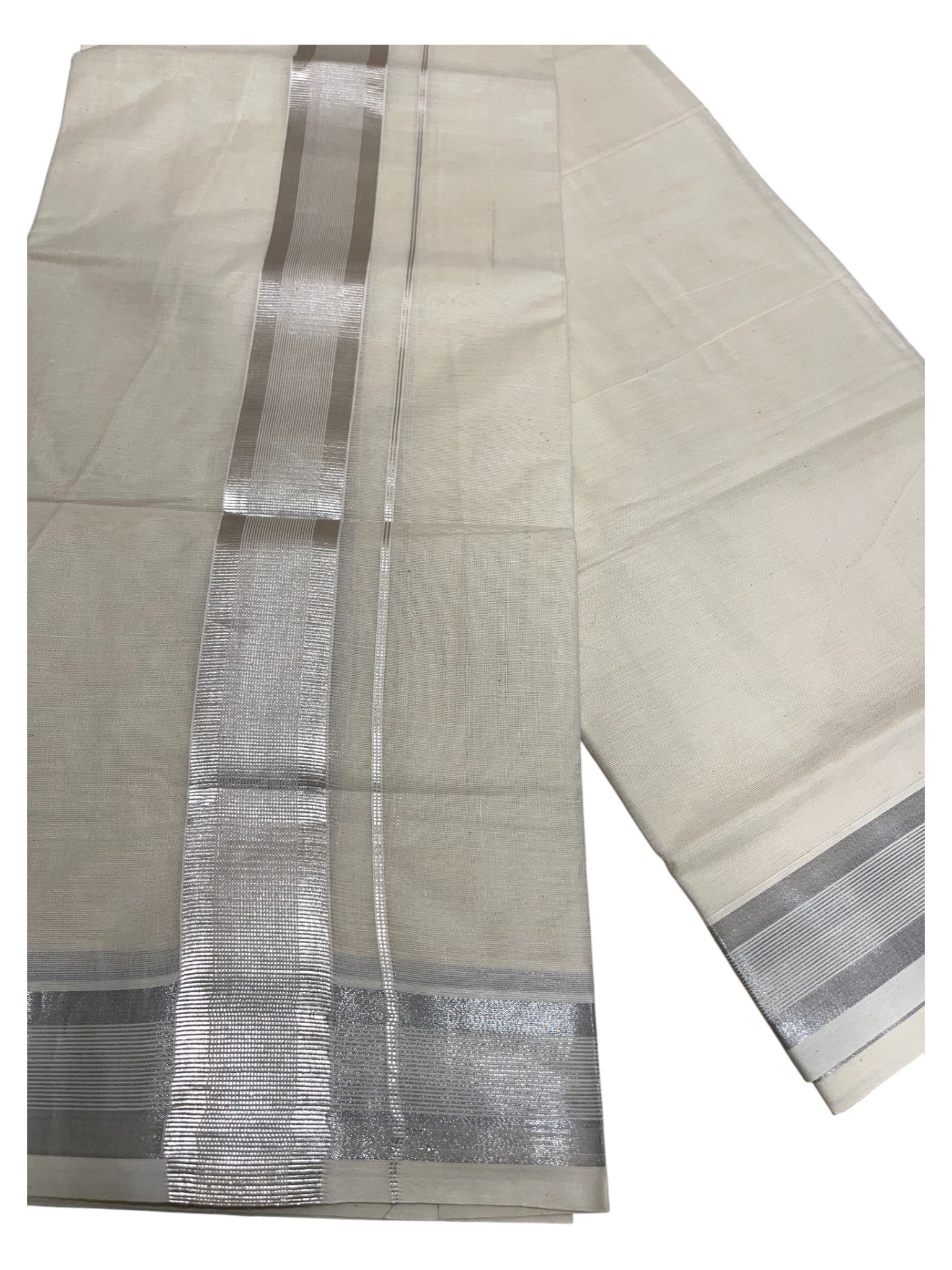 Southloom Kerala Cotton Double Mundu with Silver Border (South Indian Dhoti)
