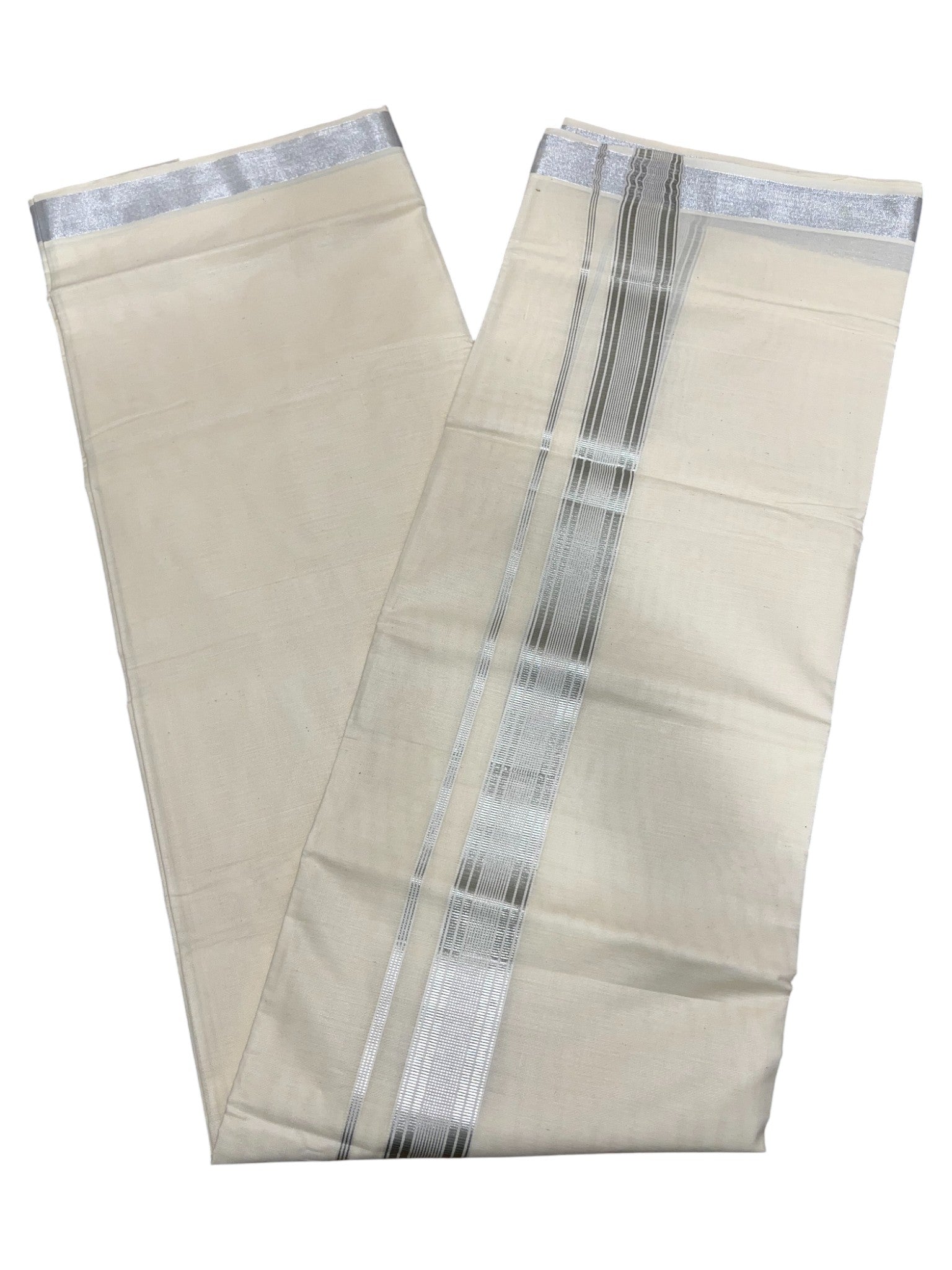 Southloom Kerala Cotton Double Mundu with Silver Border (South Indian Dhoti)