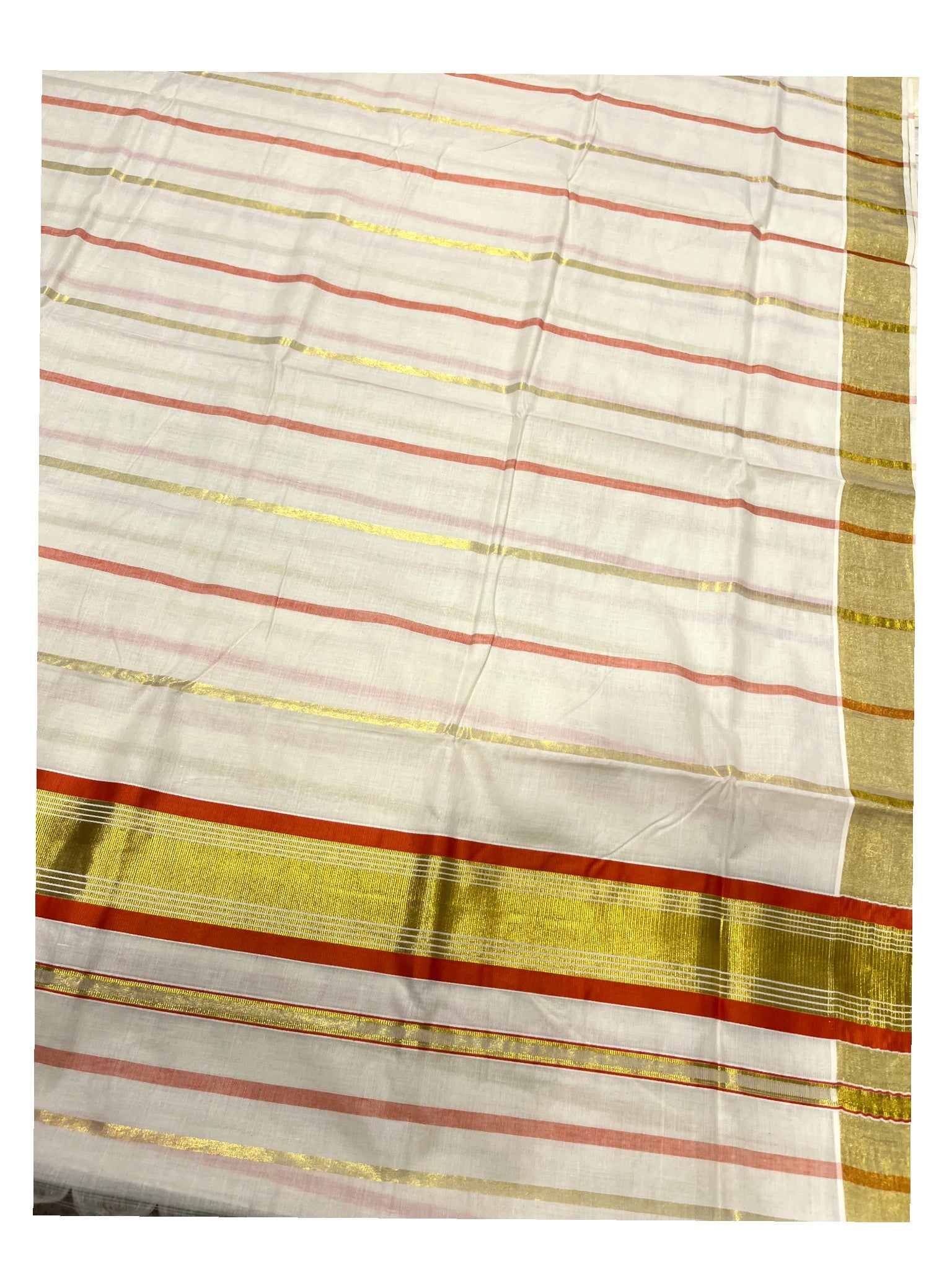 Cotton Kerala Saree with Stripes on Body. Simple saree for everyday wear, may it be to the office or to the temple.