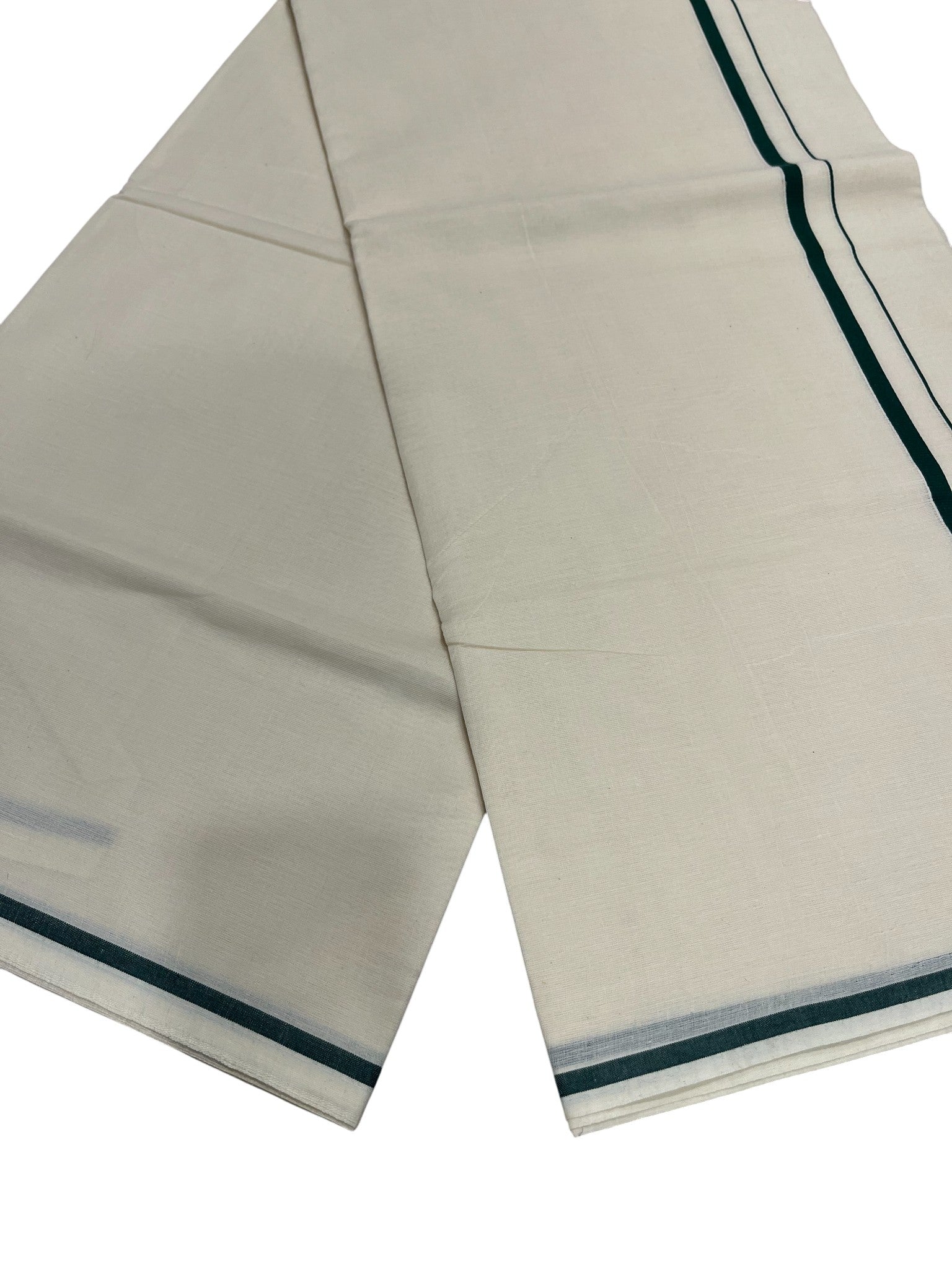 Southloom Kerala Cotton Plain Saree with Green Puliyilakkara Border