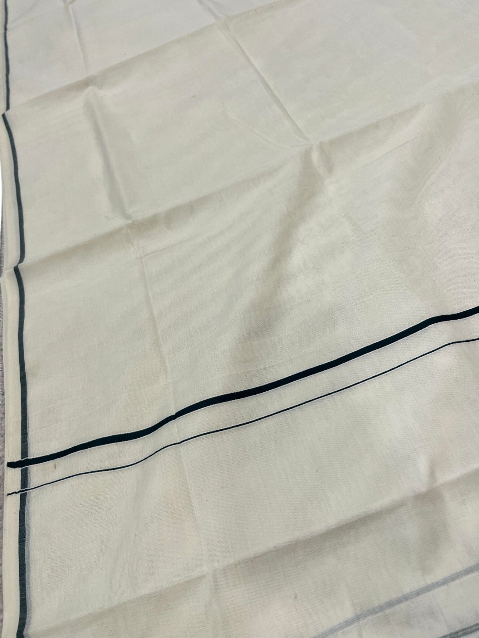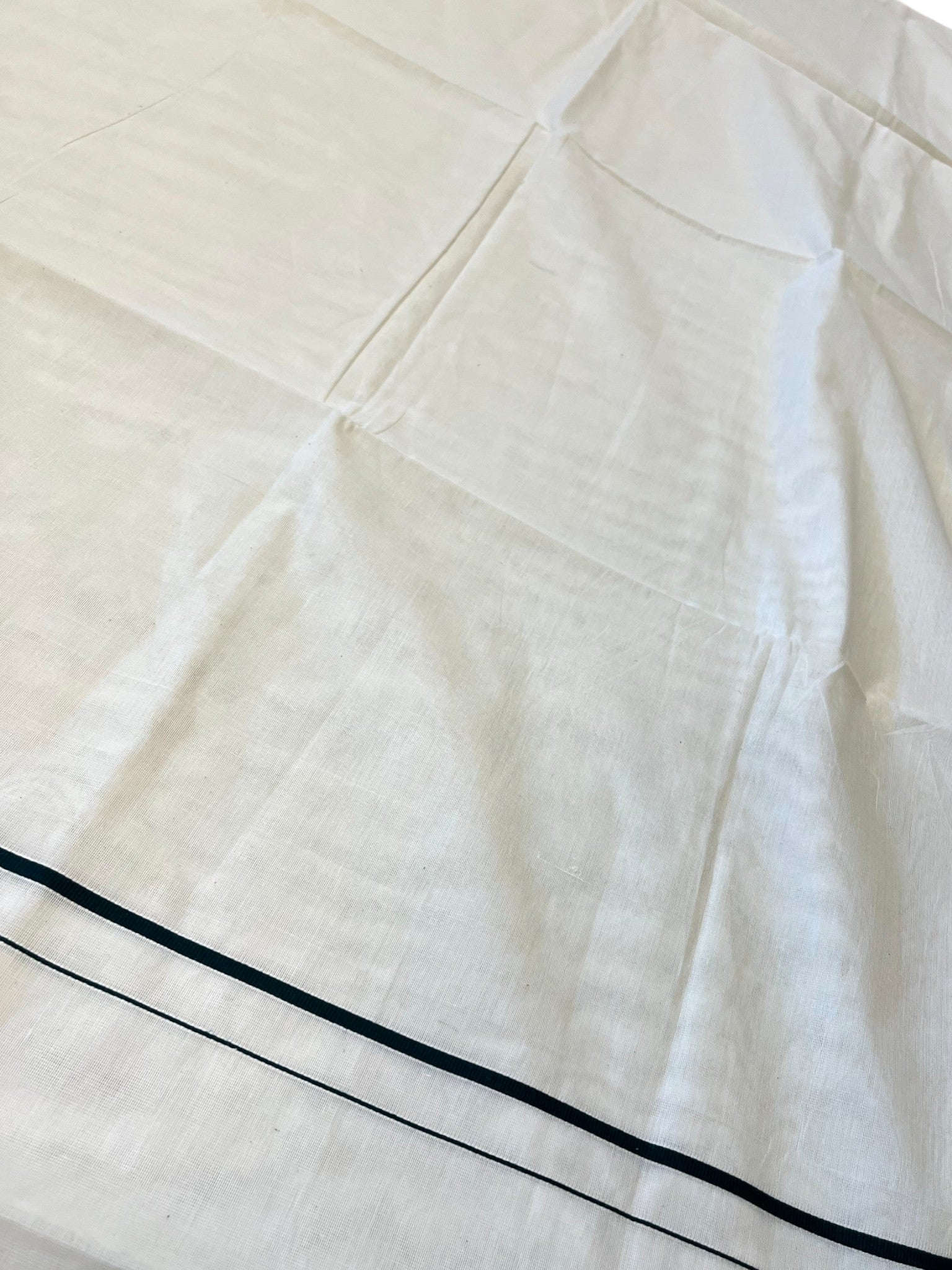 Southloom Kerala Cotton Plain Saree with Green Puliyilakkara Border