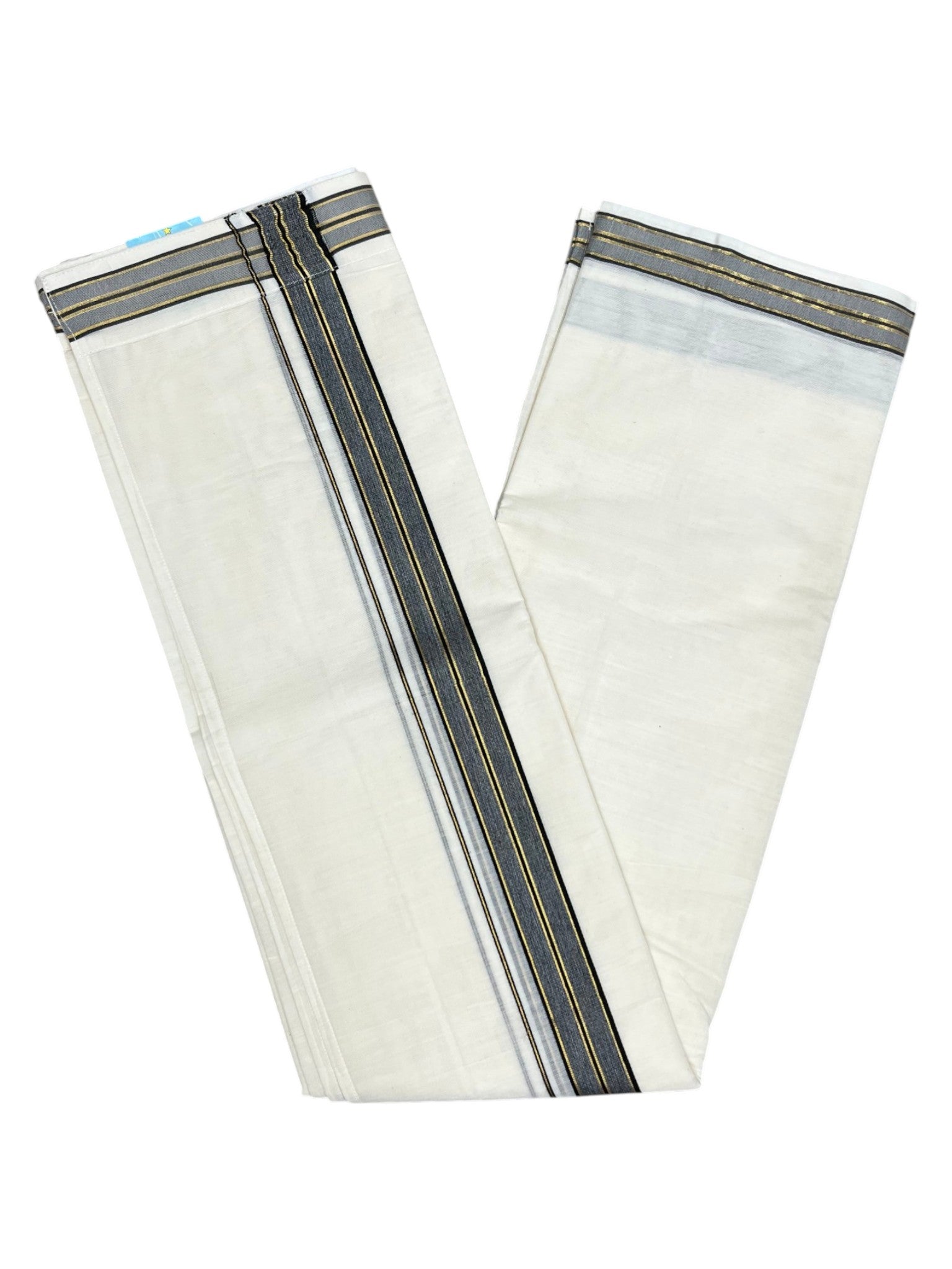 Southloom Kerala Cotton Velcro Double Mundu with Gray And Gold Kasavu Border (South Indian Kerala Dhoti)