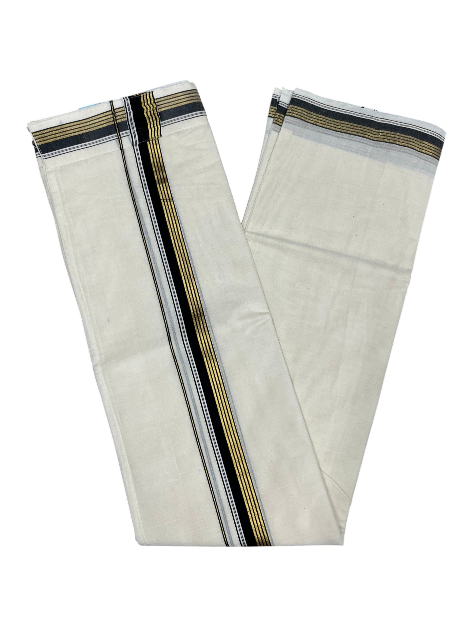 Southloom Kerala Cotton Velcro Double Mundu with Black And Gold Kasavu Border (South Indian Kerala Dhoti)