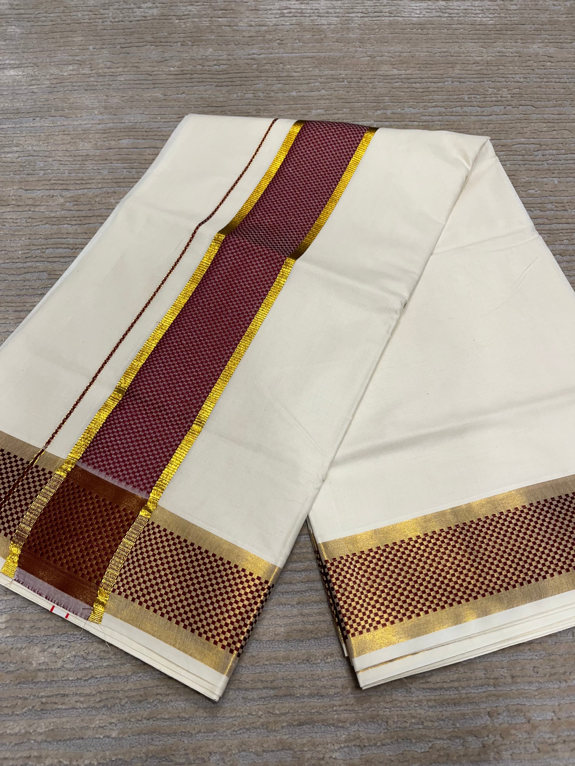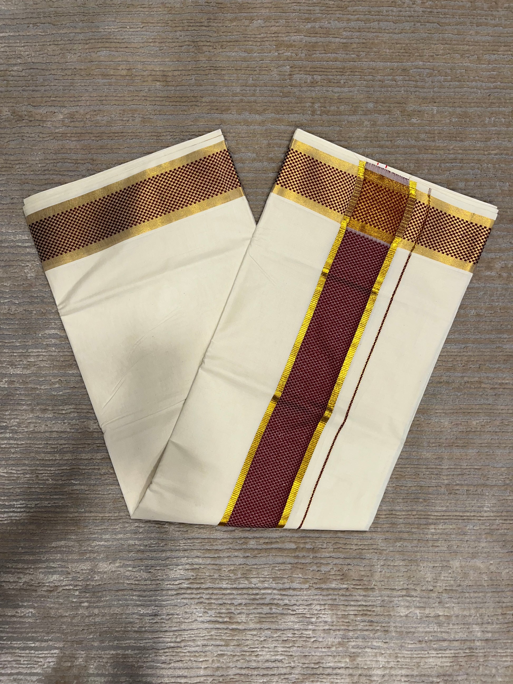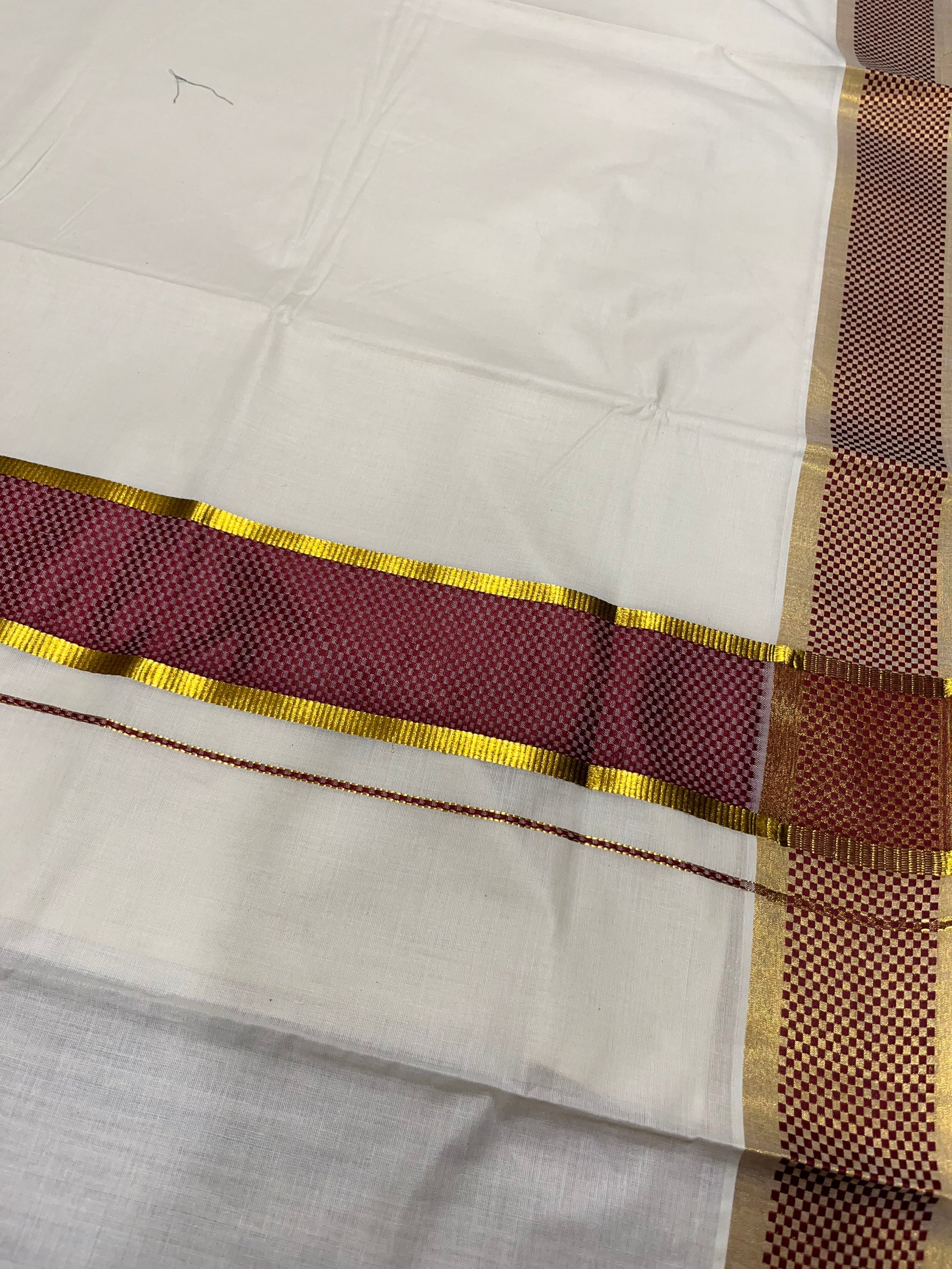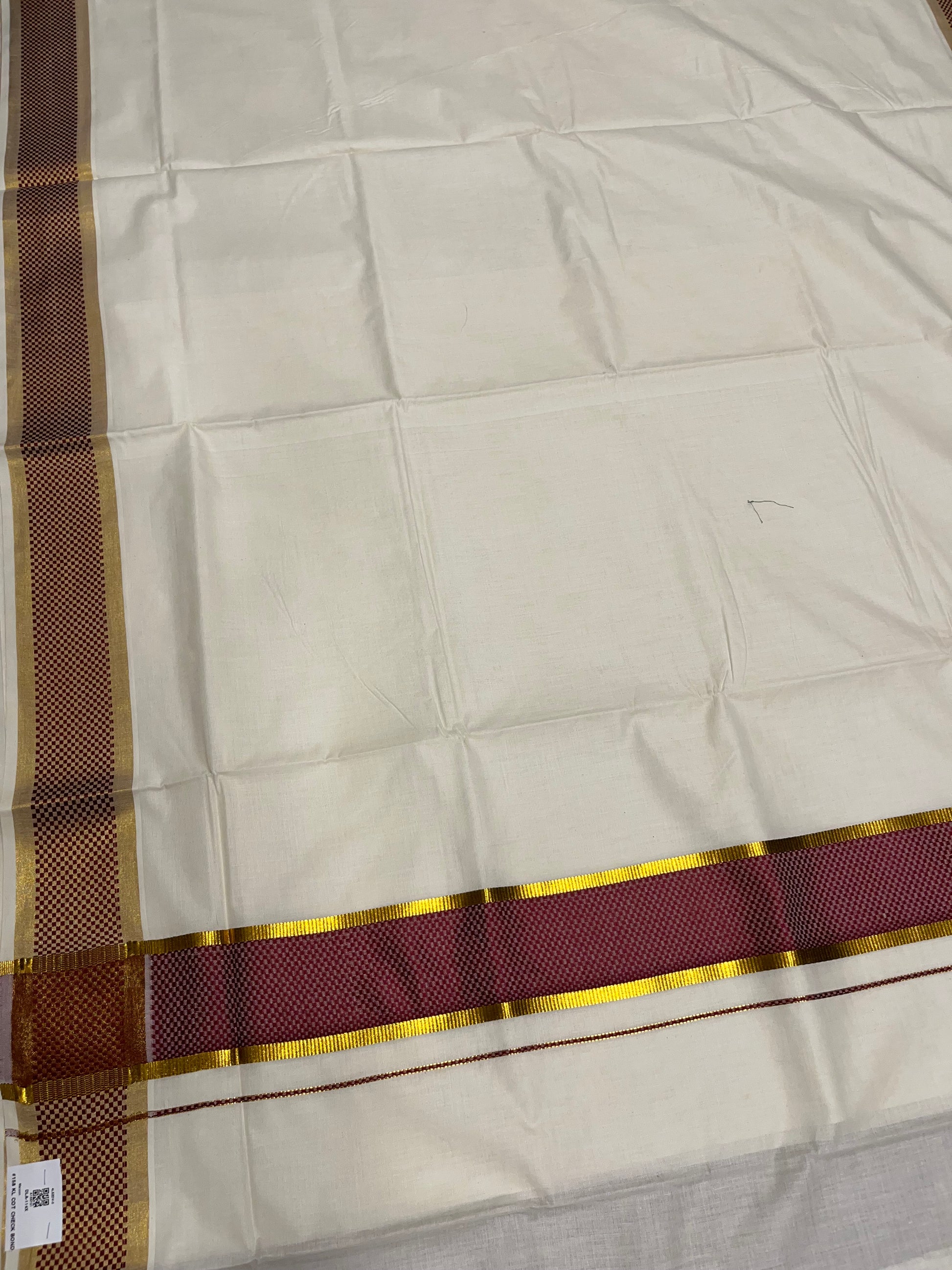 Southloom Kerala Kasavu Cotton Saree with Maroon Paa Neythu Border