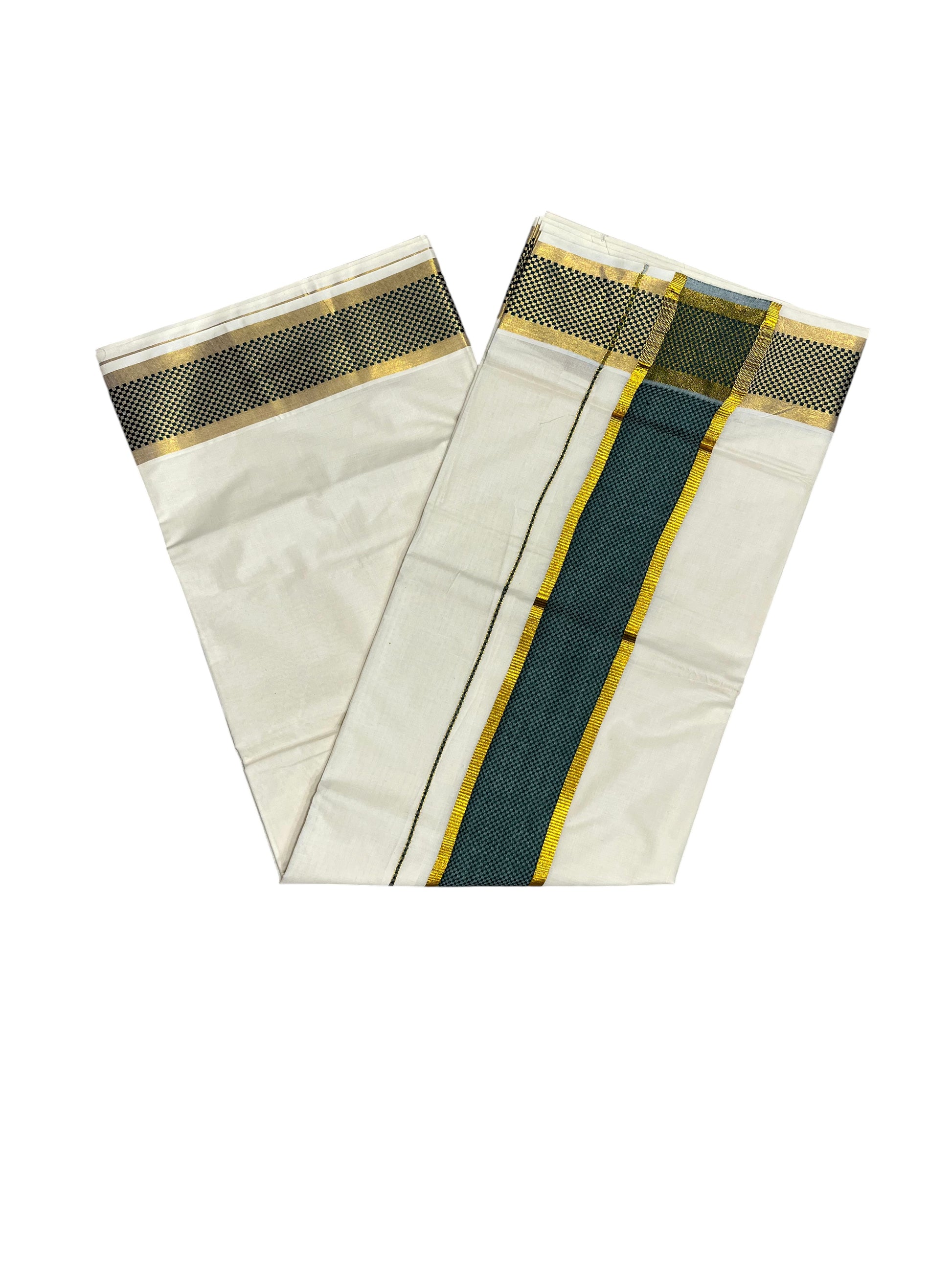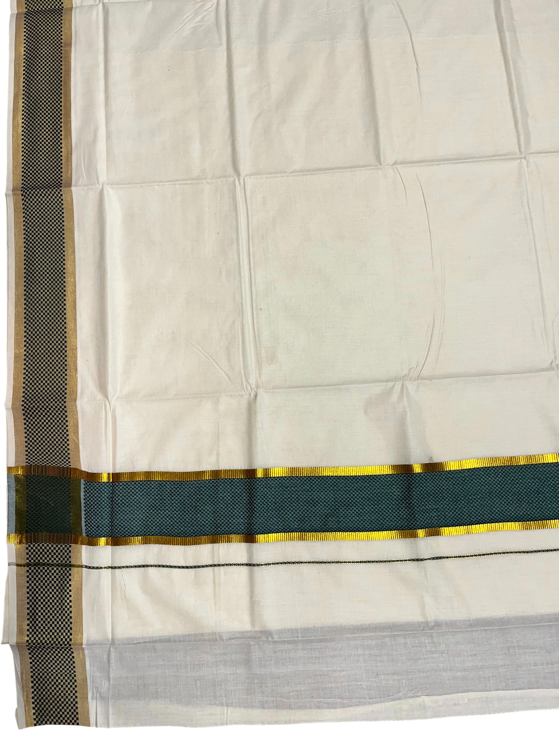 Southloom Kerala Kasavu Cotton Saree with Green Colour Paa Neythu Border