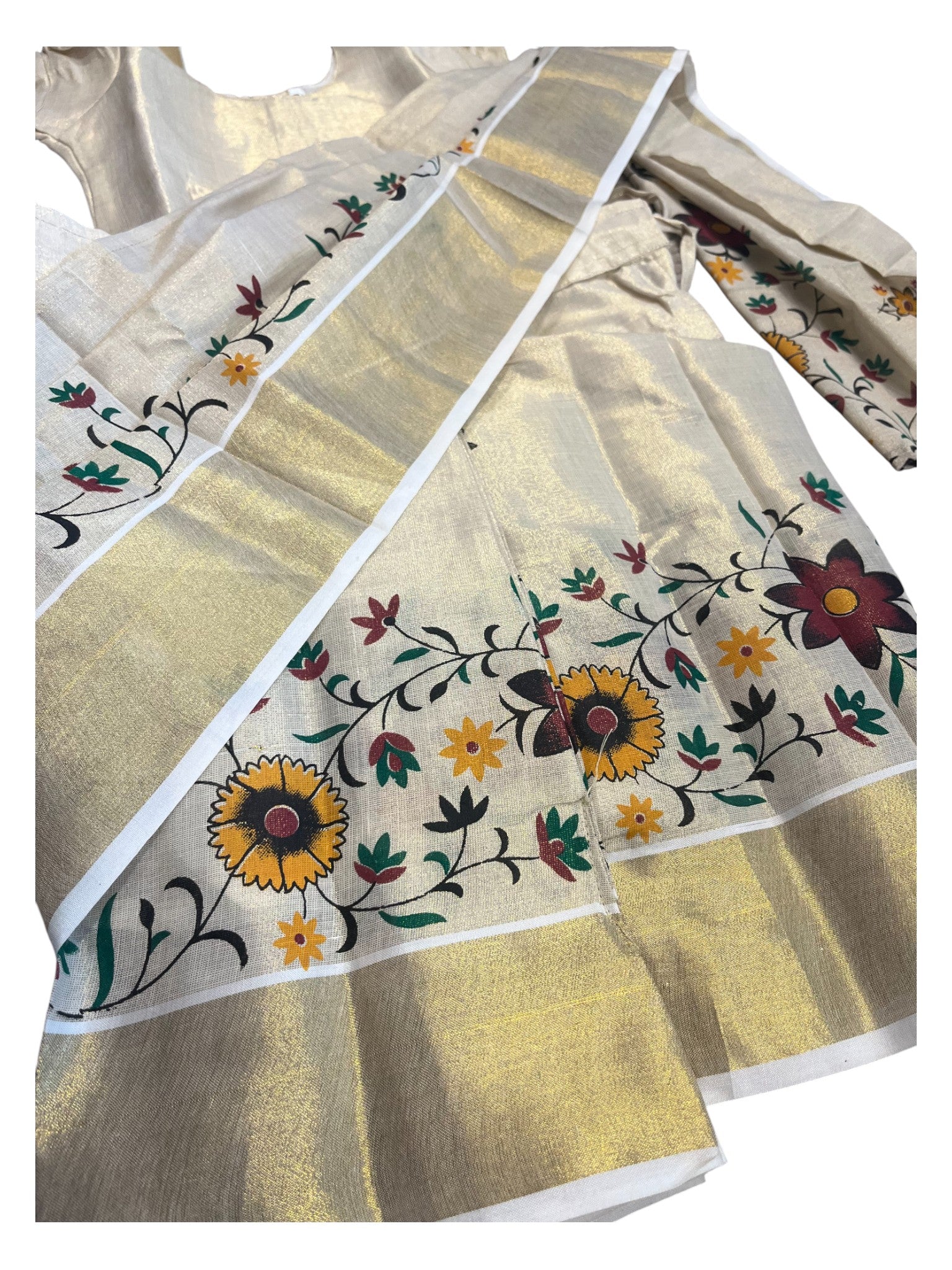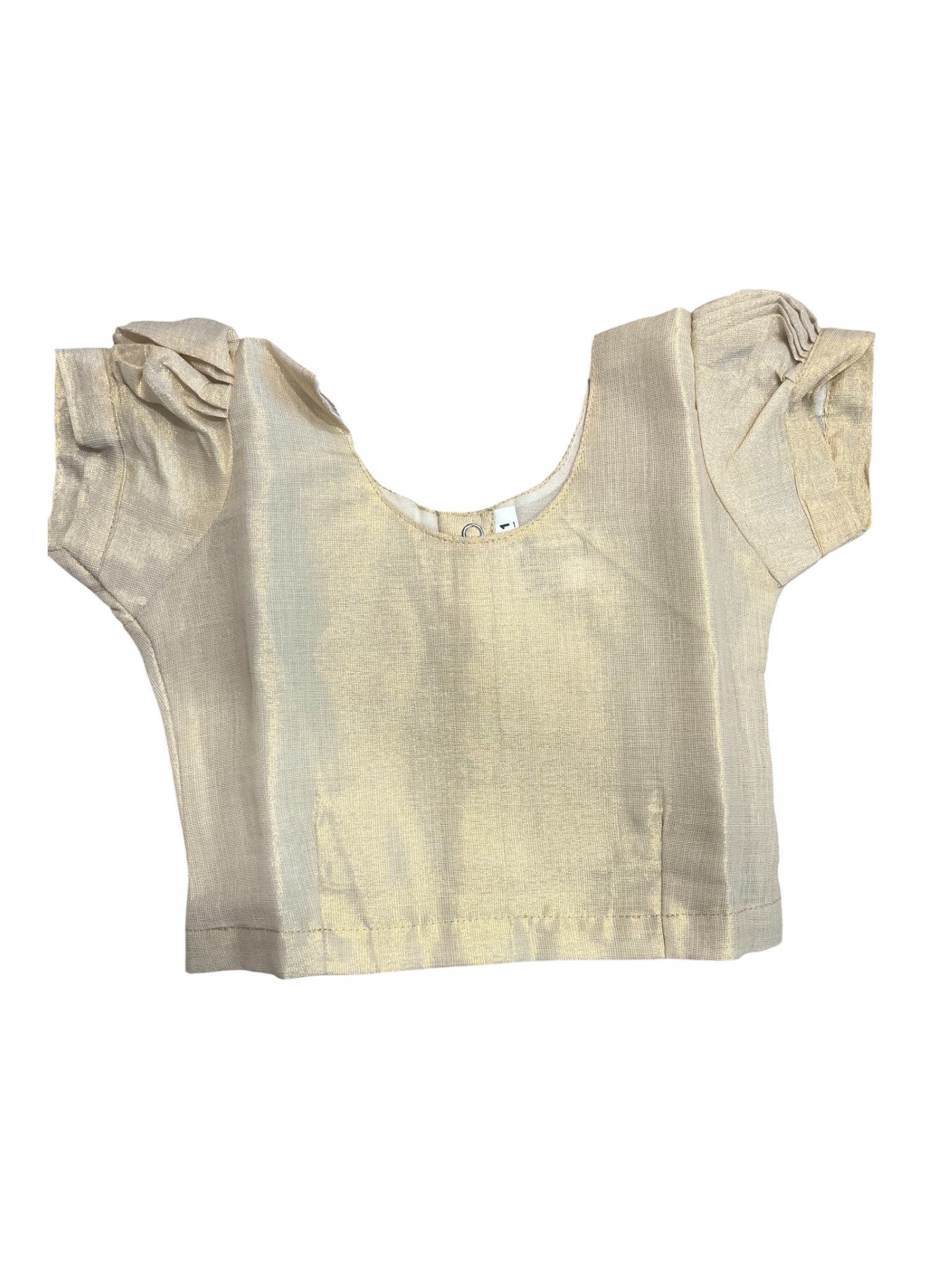 Southloom Kerala Ready to Wear And Tissue Kasave Pavada Blouse with Priented Work for Kids (Age 1)