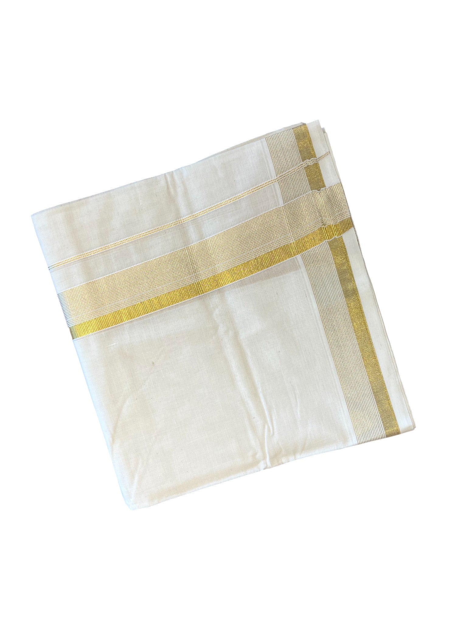 Southloom Kerala Pure Cotton Double Mundu with Gold Border (South Indian Dhoti)