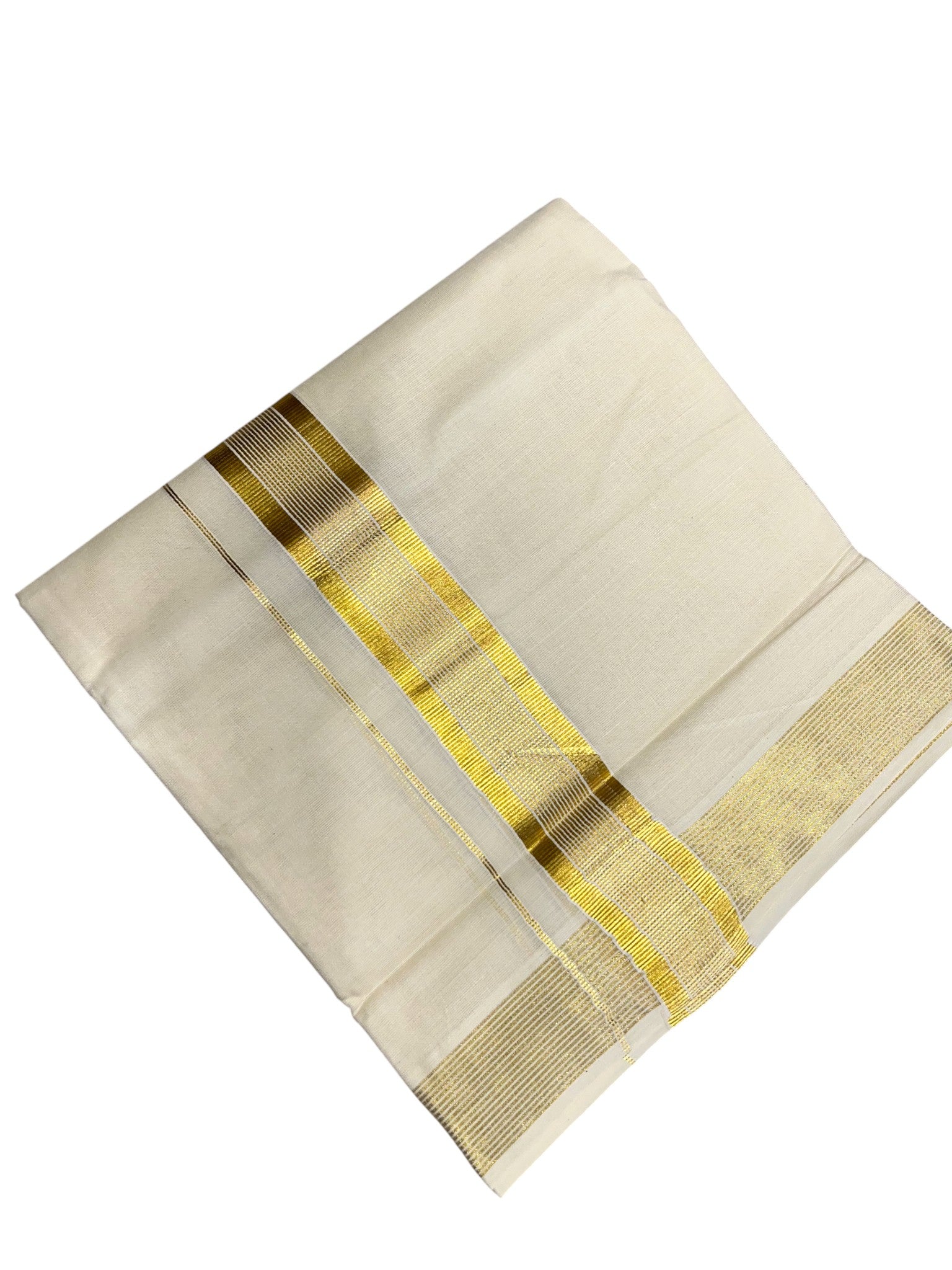 Southloom Kerala Pure Cotton Double Mundu with Gold Line Border (South Indian Dhoti)
