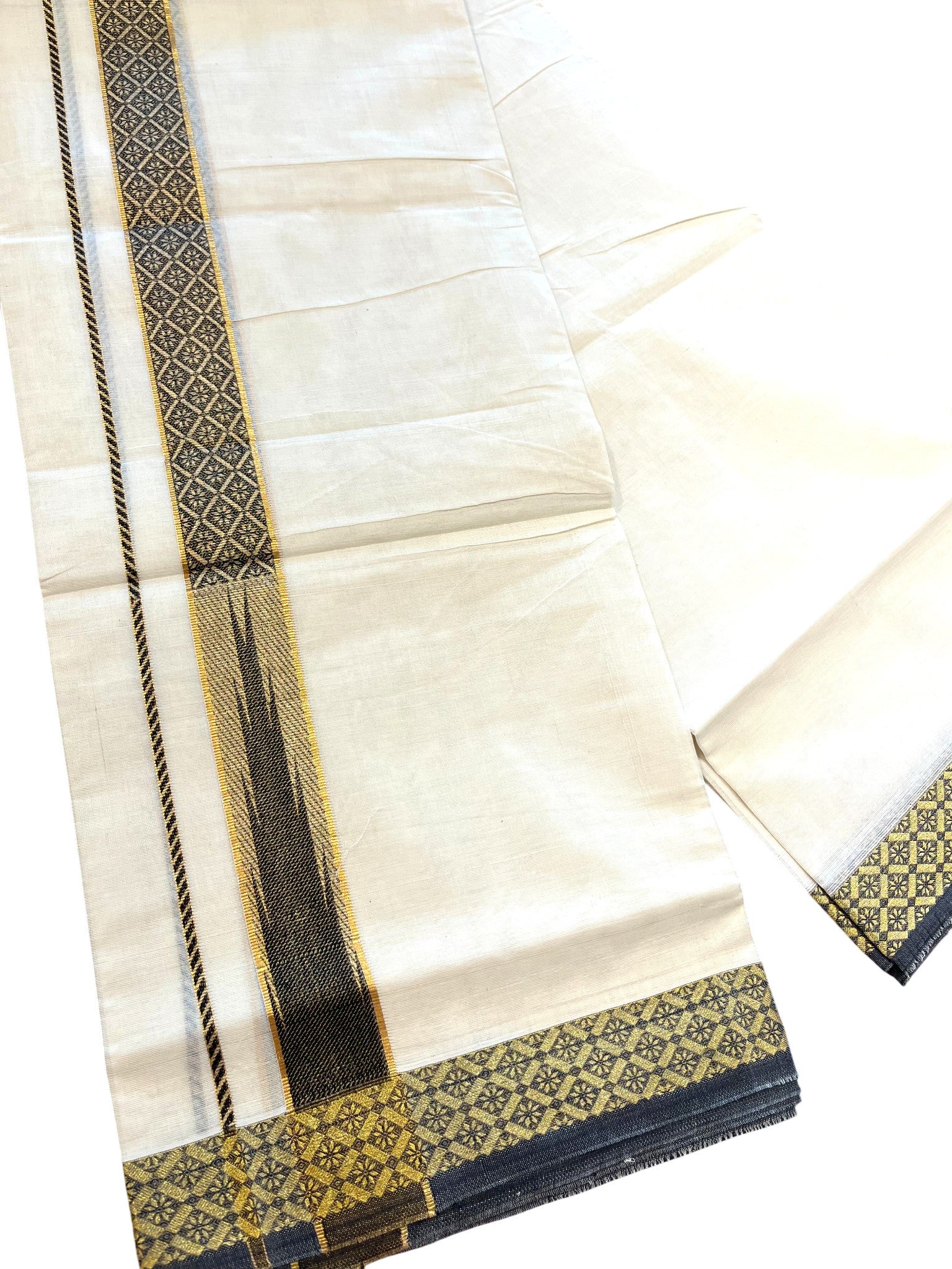 Southloom Kerala Pure Cotton Double Mundu with Kasavu Kara and Black Border (South Indian Dhoti)