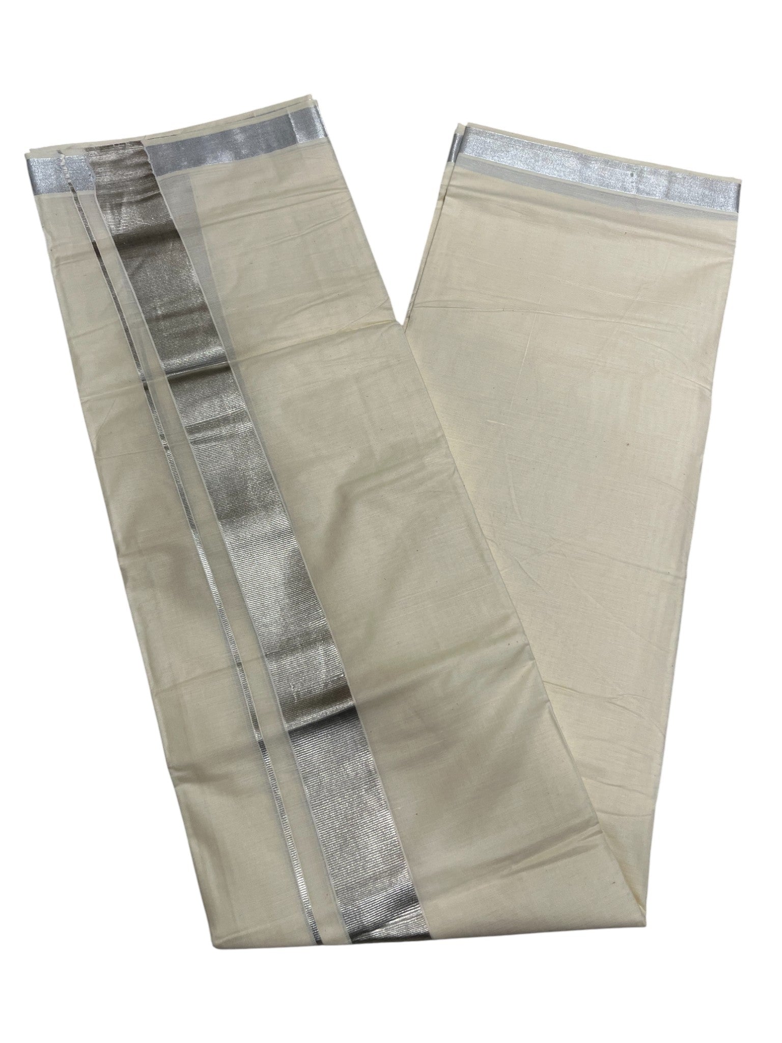 Southloom Kerala Pure Cotton Double Mundu with Silver Line Border (South Indian Dhoti)
