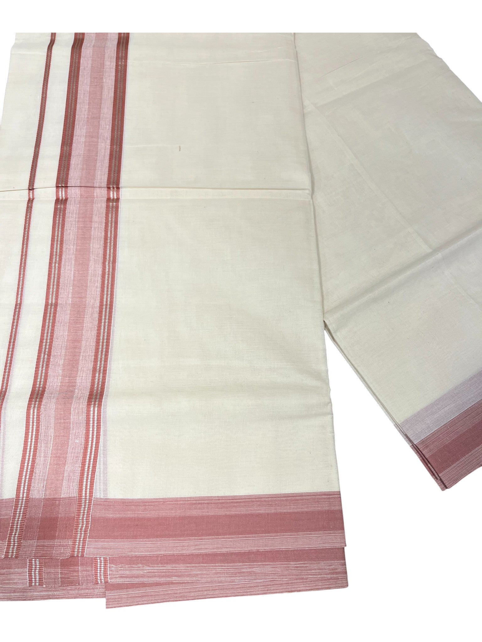 Southloom Kerala Pure Cotton Double Mundu with Peach Colour And Silver Lines Border (South Indian Dhoti)