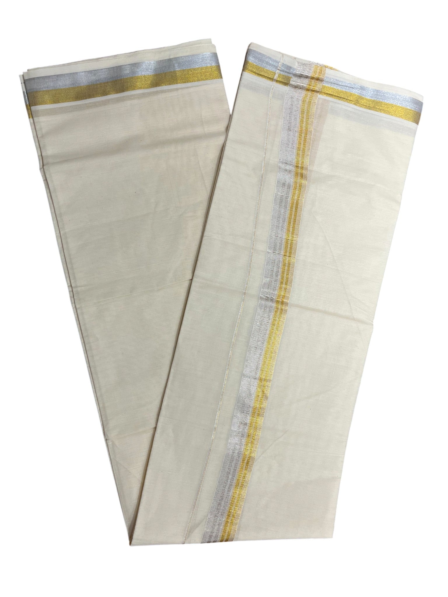 Southloom Kerala Pure Cotton Double Mundu with Silver and Gold Border (South Indian Dhoti)