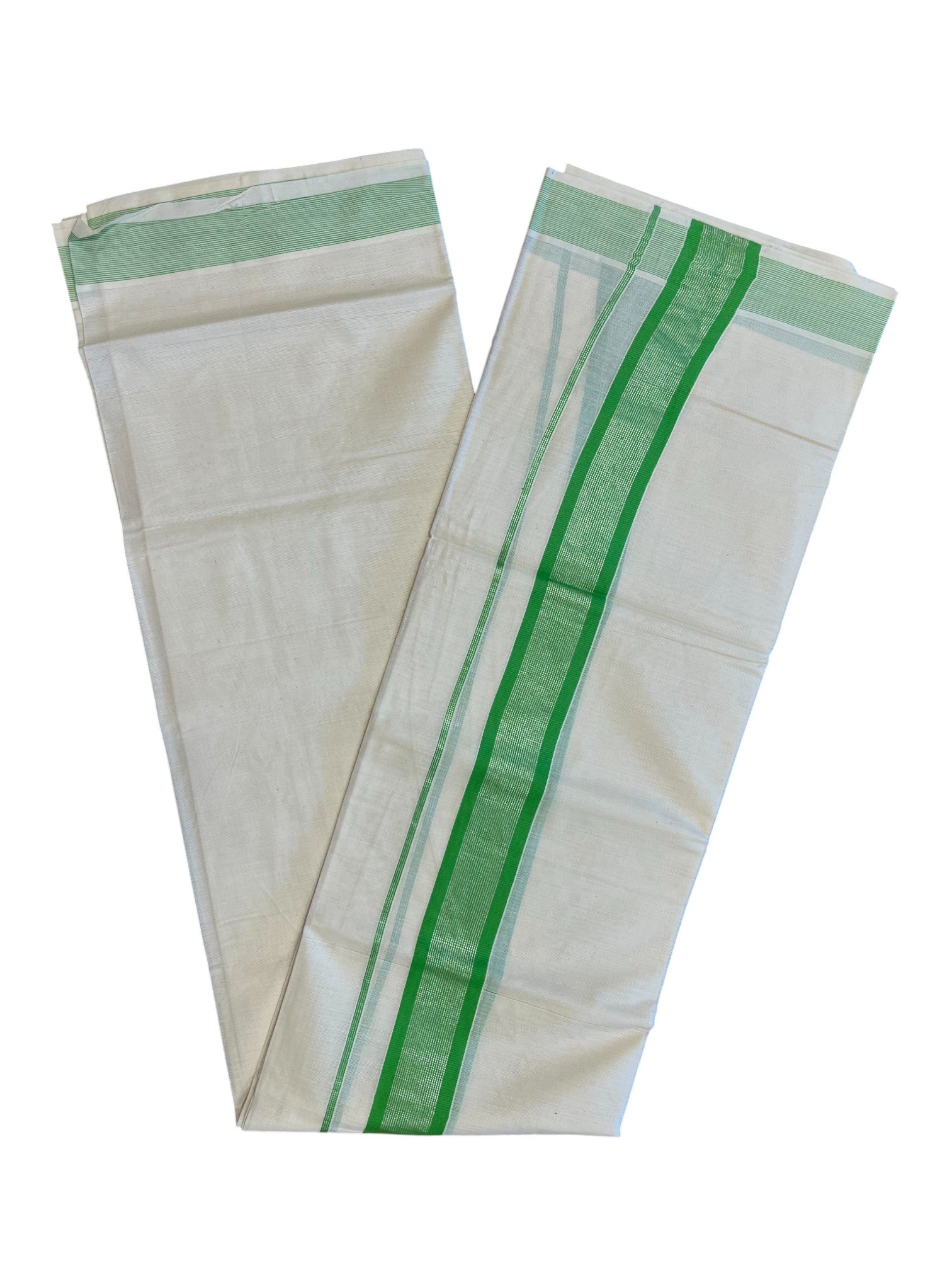 Southloom Kerala Pure Cotton Double Mundu with Silver Lines & Green Border (South Indian Dhoti)