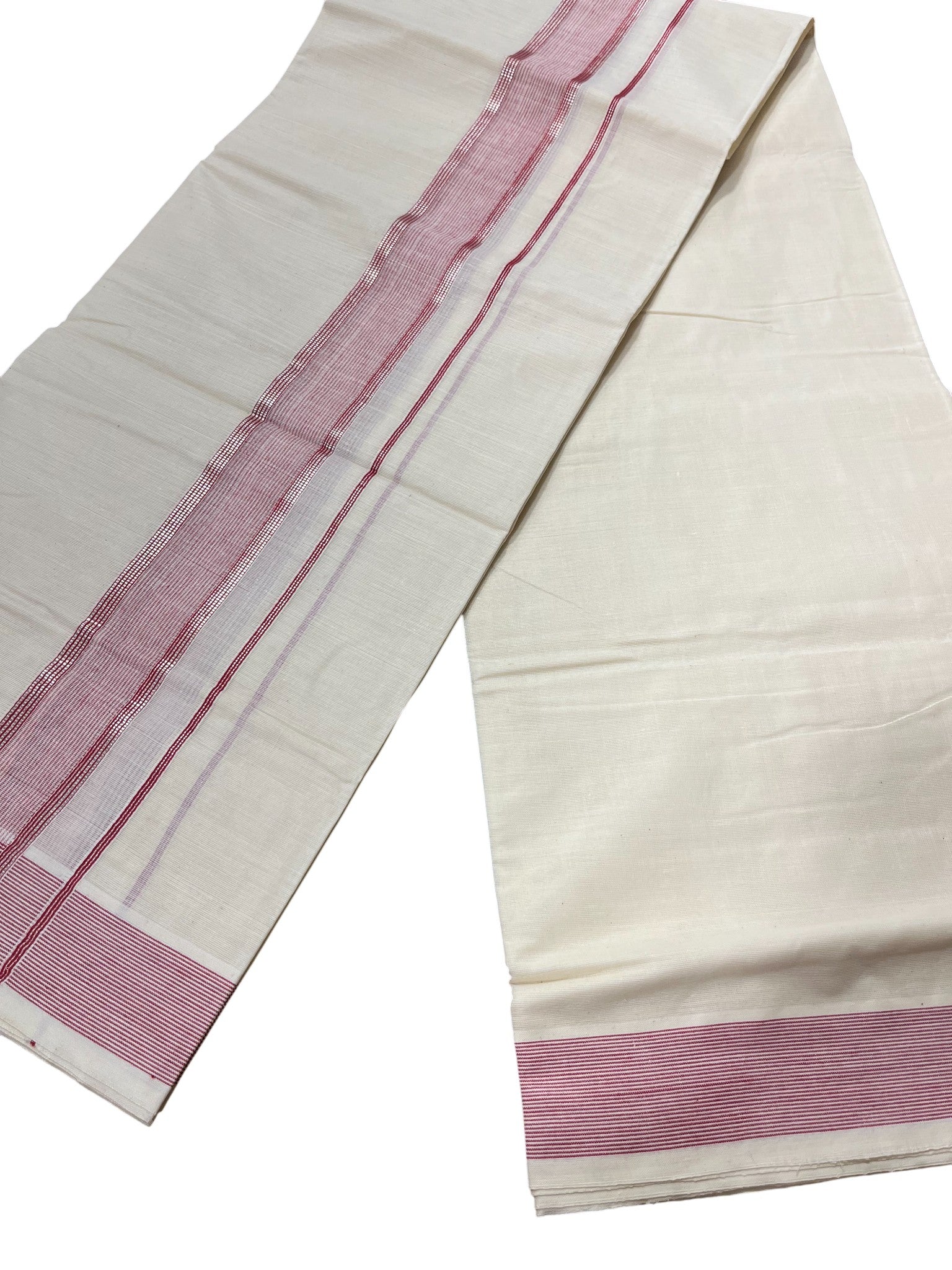Southloom Kerala Pure Cotton Double Mundu with Silver Lines & Maroon Border (South Indian Dhoti)