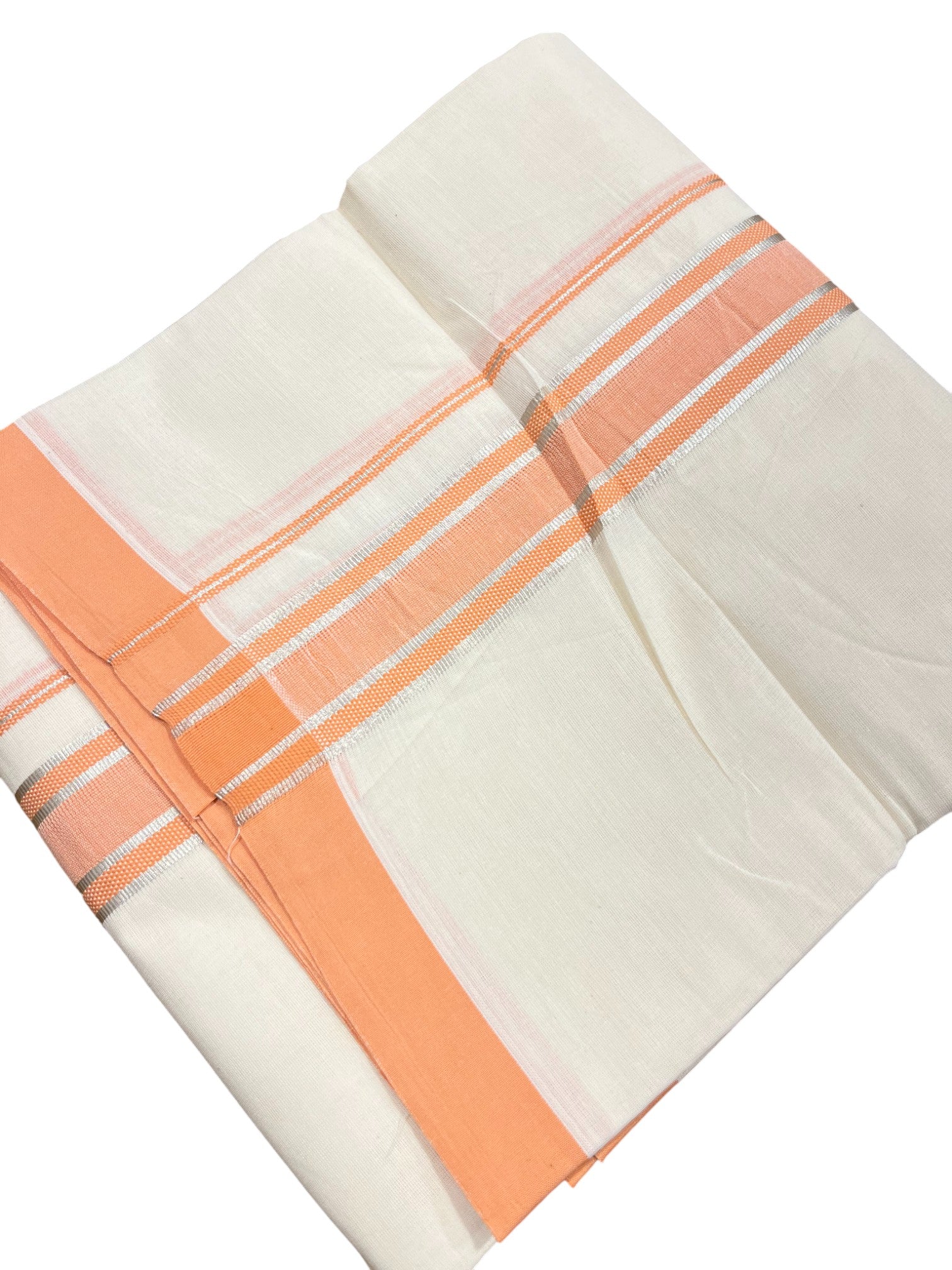 Southloom Kerala Pure Cotton Double Mundu with Silver Lines & Peach Border (South Indian Dhoti)