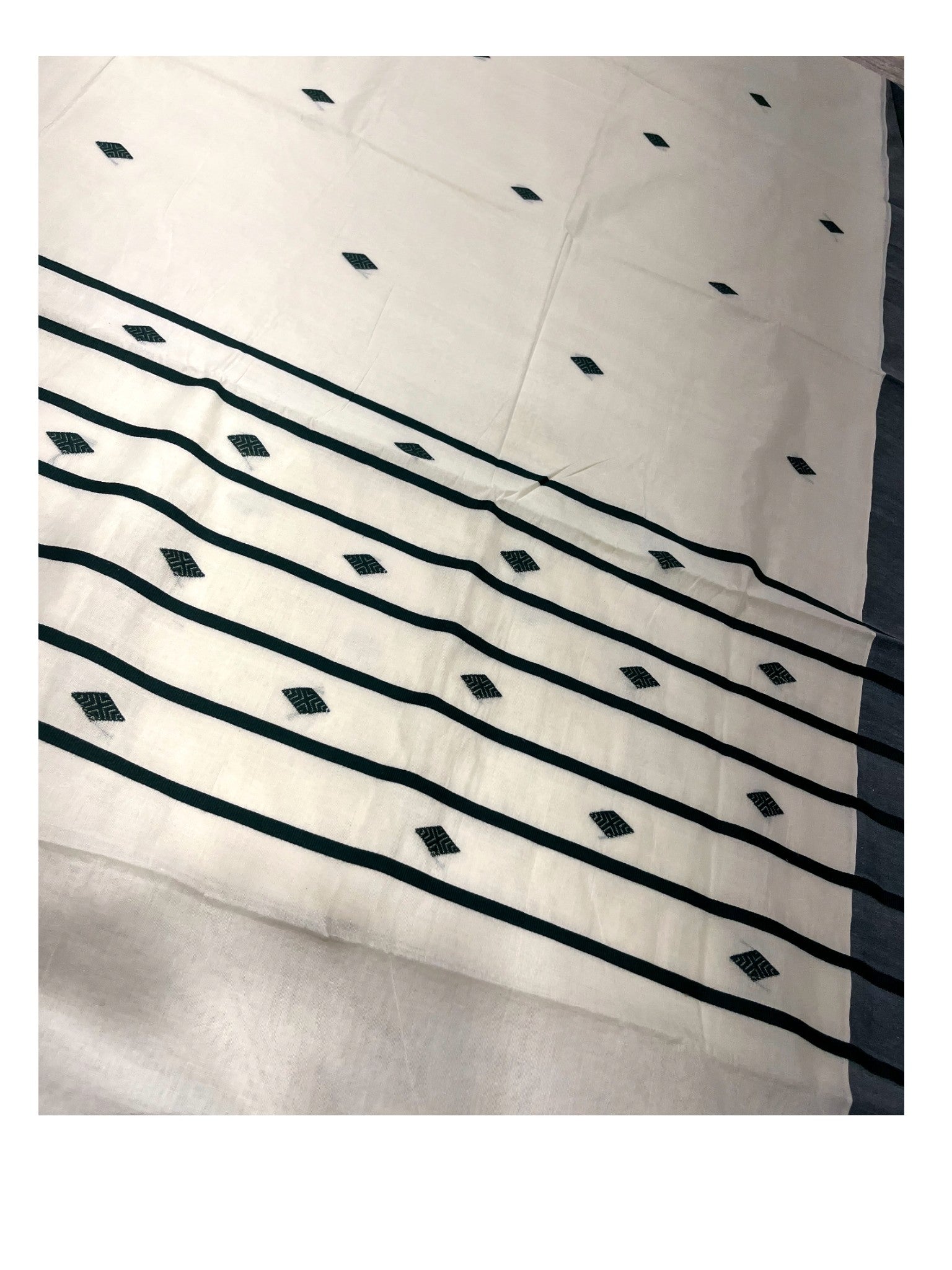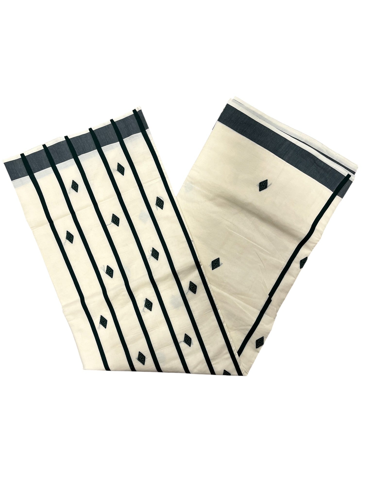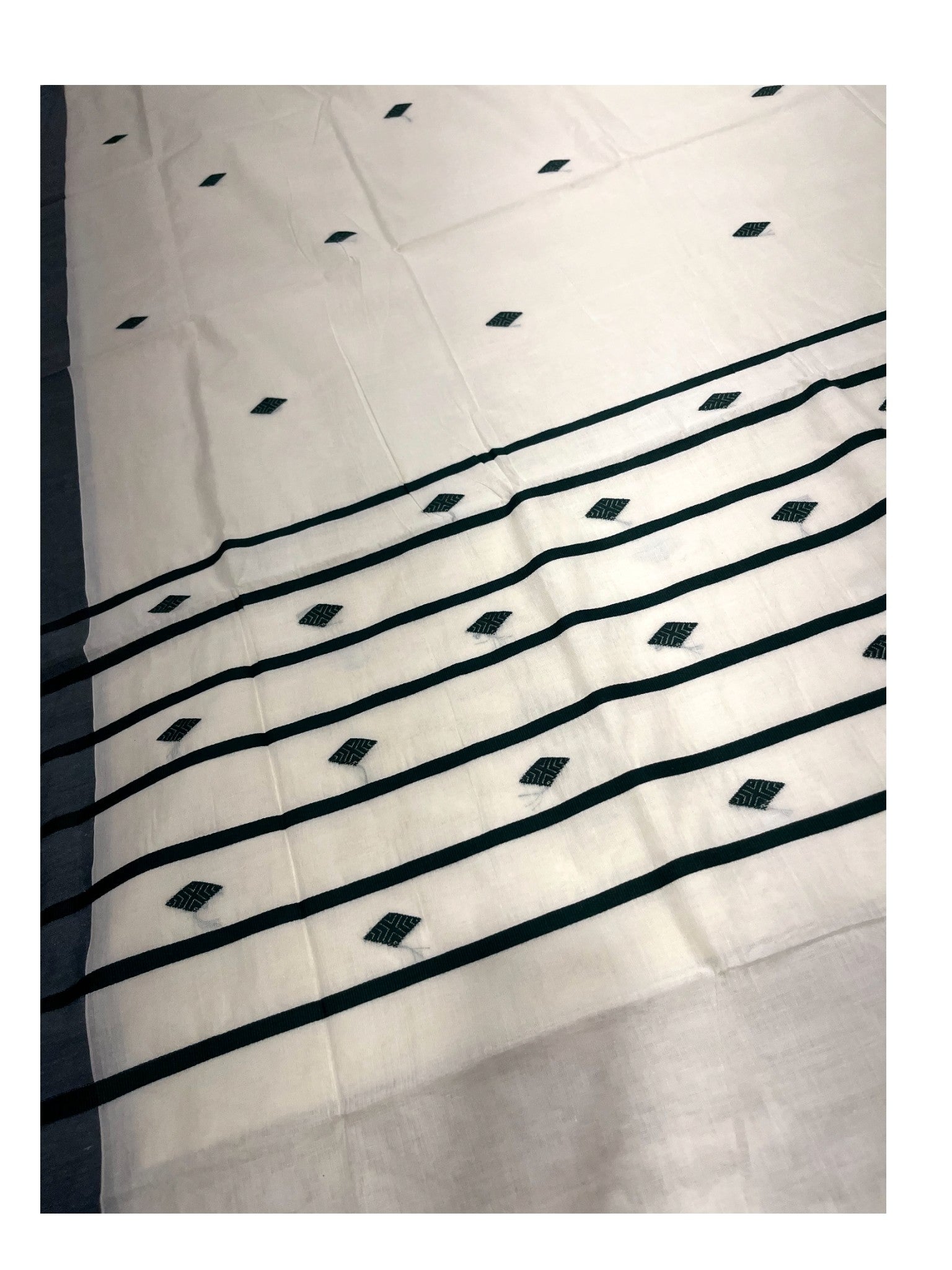 Southloom Kerala Pure Cotton Saree with Green Butta Embroidery Works on Body