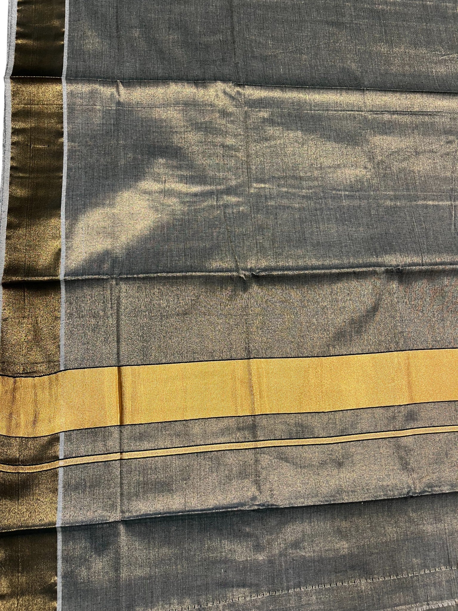 Southloom Kerala Tissue Black Plain Saree With Golden Border