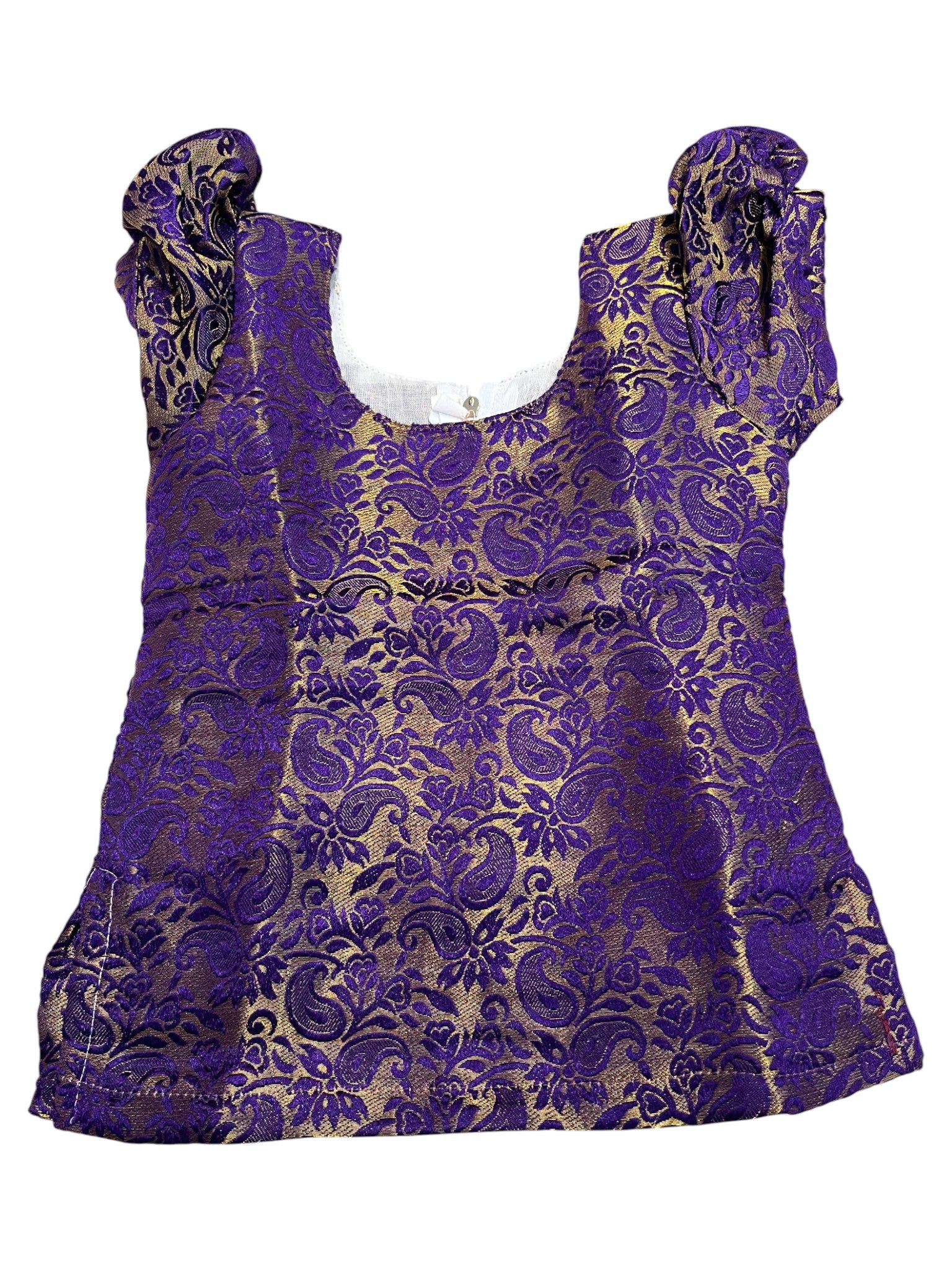 South Indian Pavada and Blouse is a favourite among kids and girls, particularly during festivities. This particular one is stitched material (both Pavada and blouse)